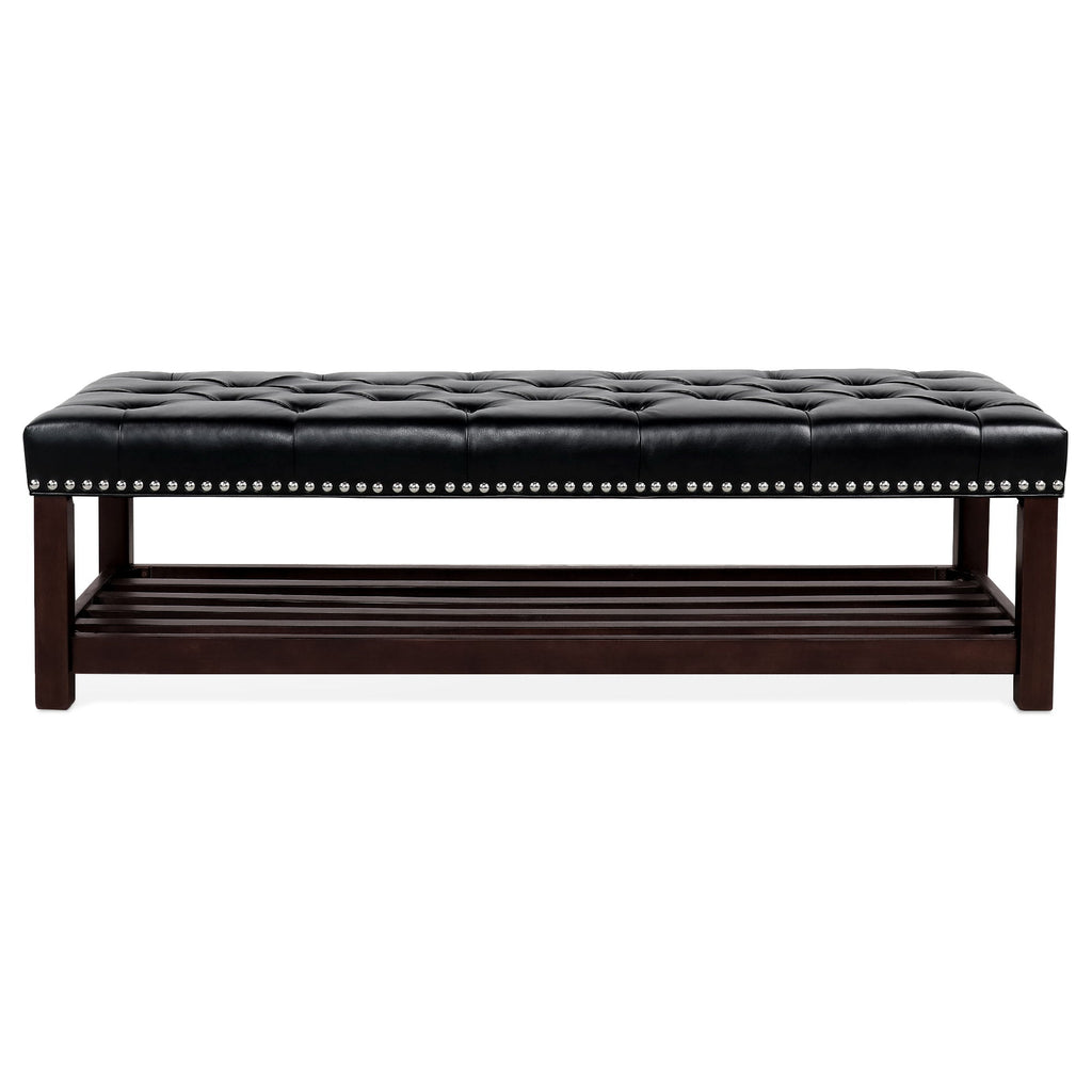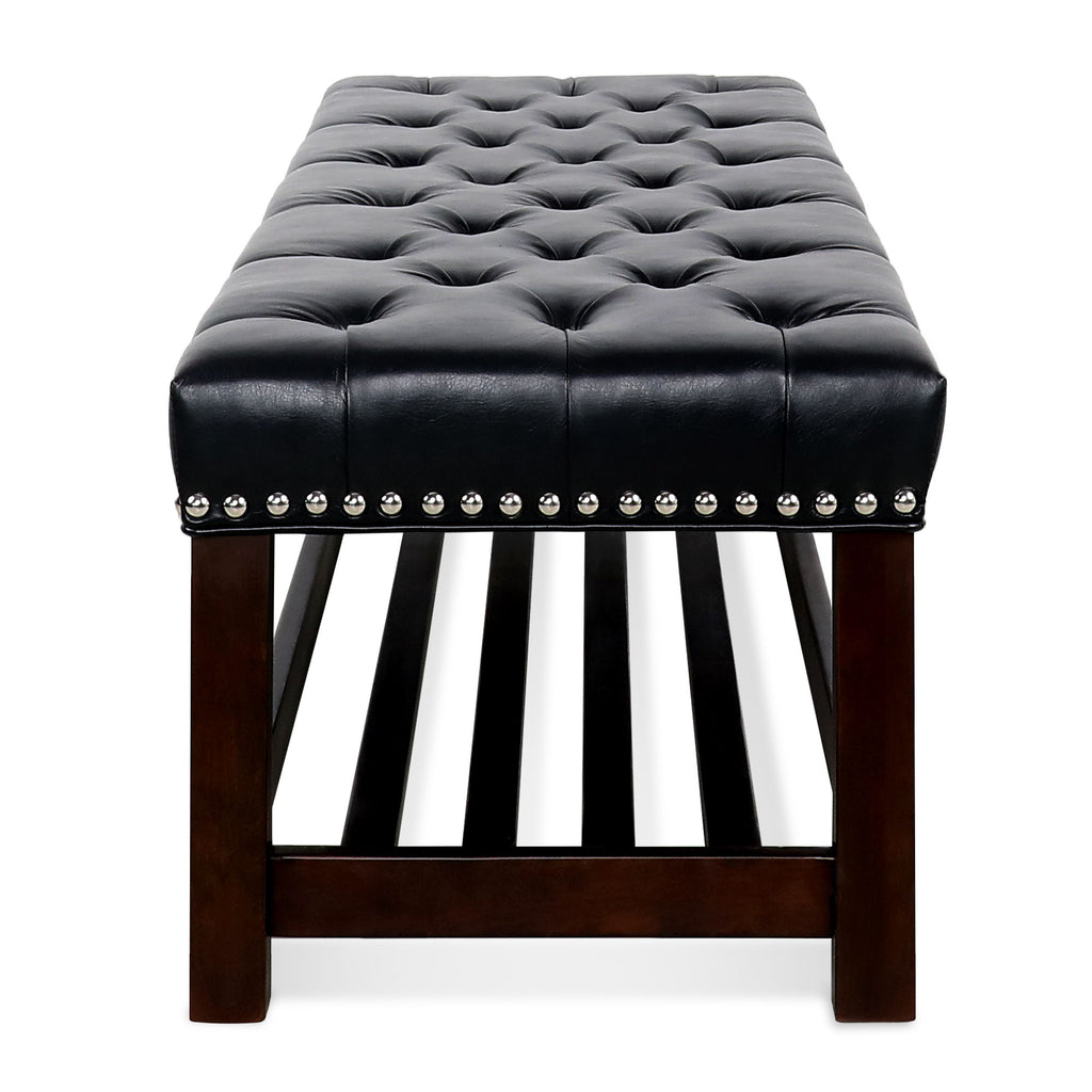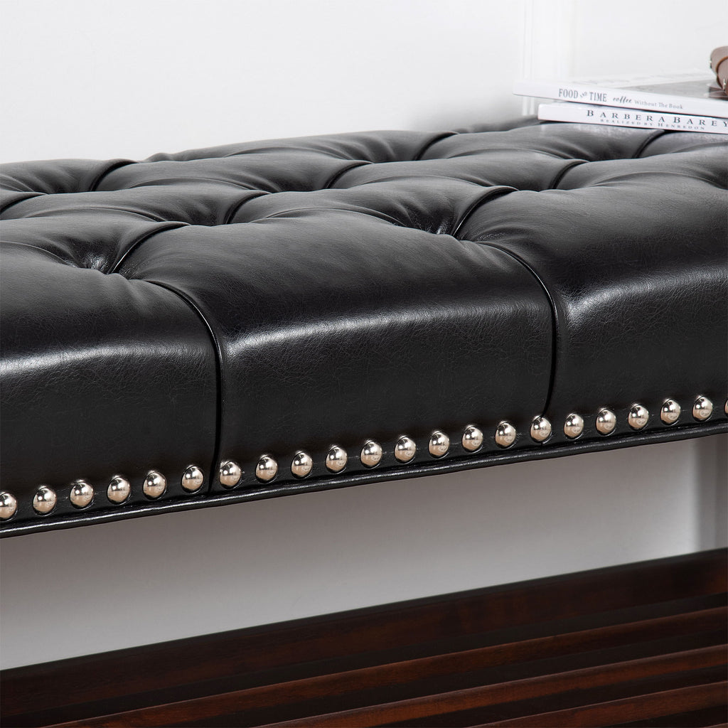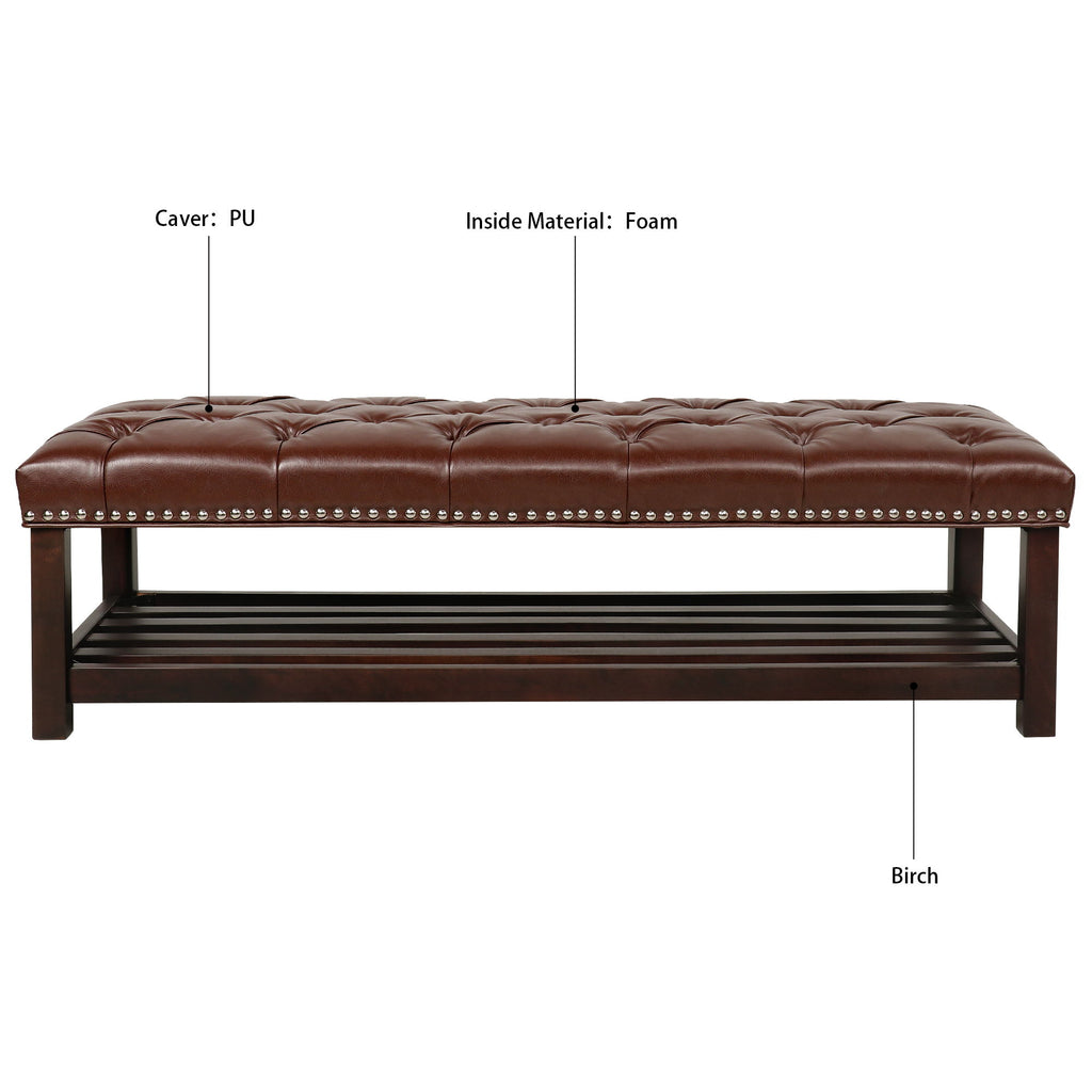 Bedroom End Of Bed Bench Tufted Upholstered End Of Bed Bench End Of Bed Entrance Shoe Bench, 60" With Nailhead Trim And Shelf Bedroom Upholstered Leather Bench Living Room Shoe Rack Footstool - Dark Brown