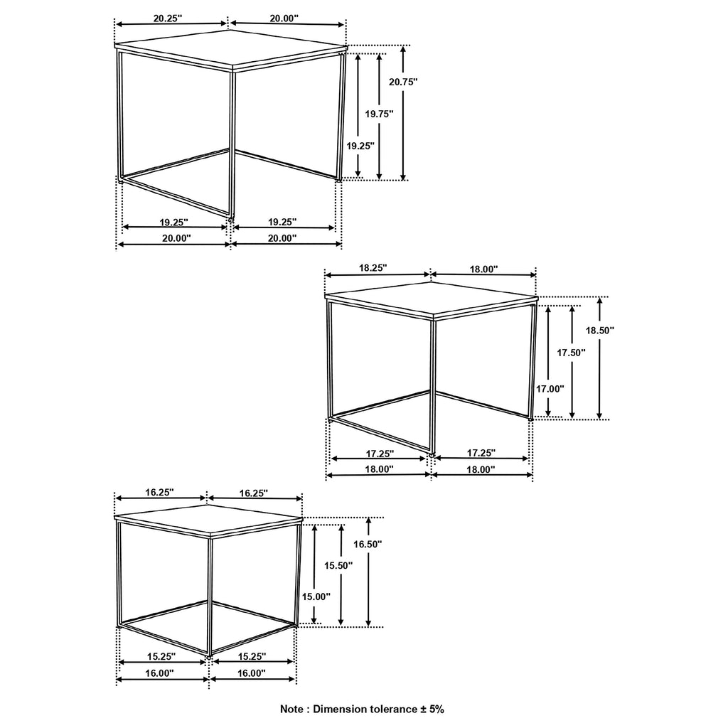 Small Table: Width: 16.25, Depth: 16.25, Height: 16.25, Weight: 9.10