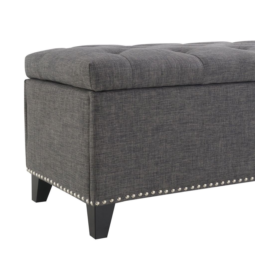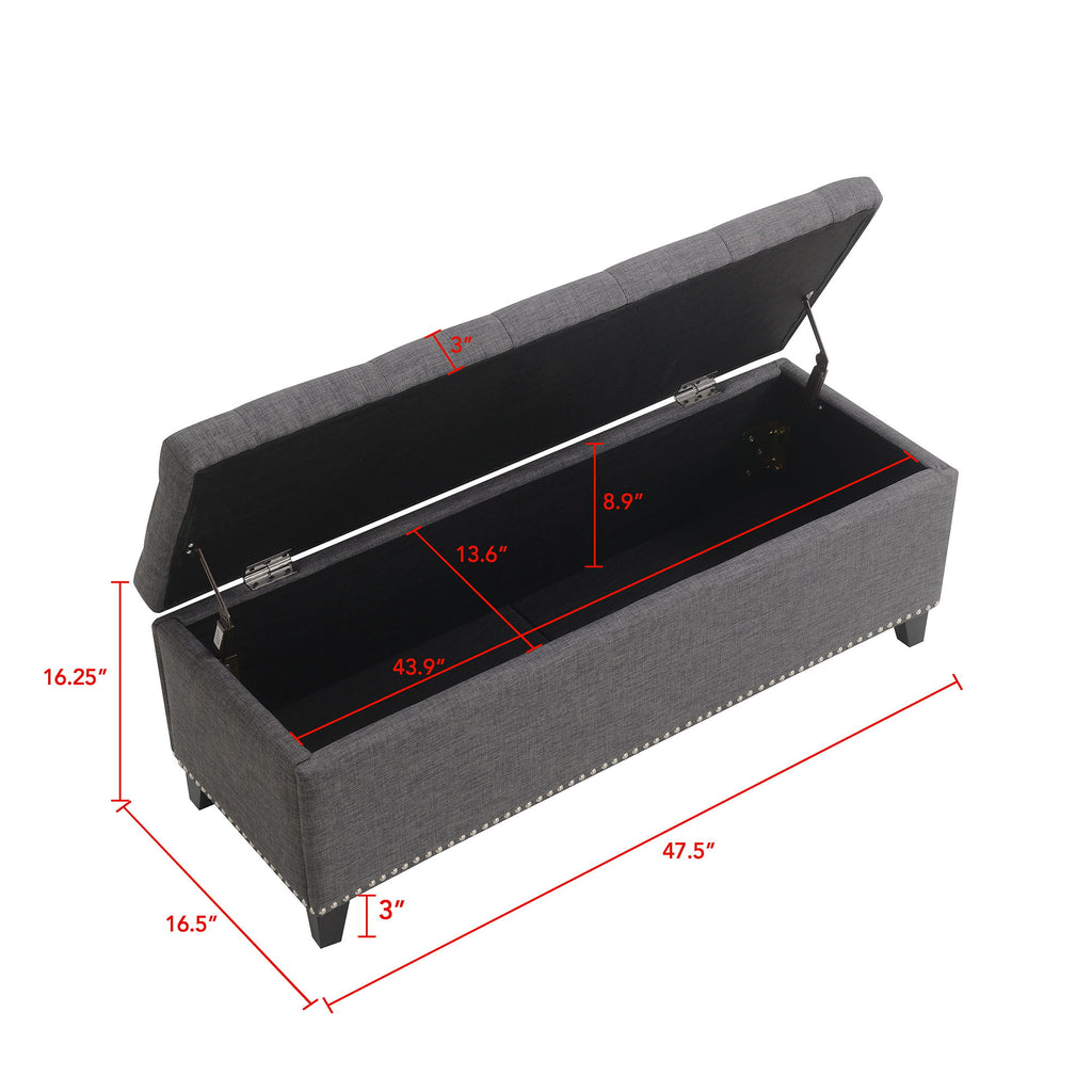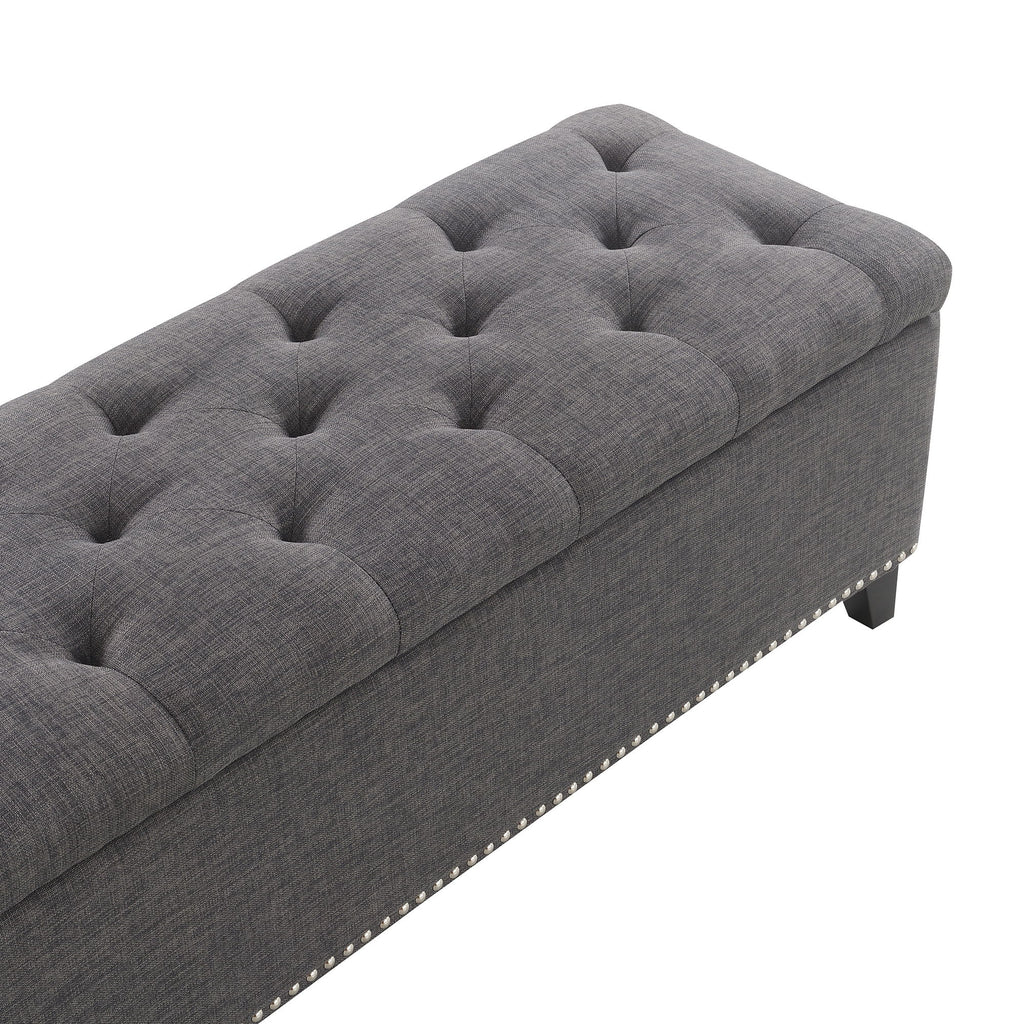 Button-Tufted Storage Ottoman With Safety Close Hinge For Living Room - Dark Gray