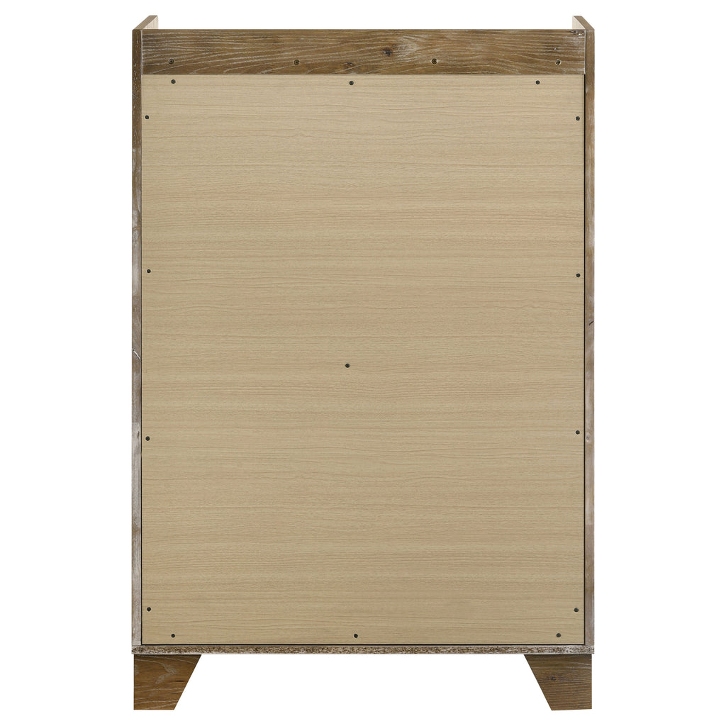 Five-drawer chest of drawers merges rustic warmth with clean contemporary structure