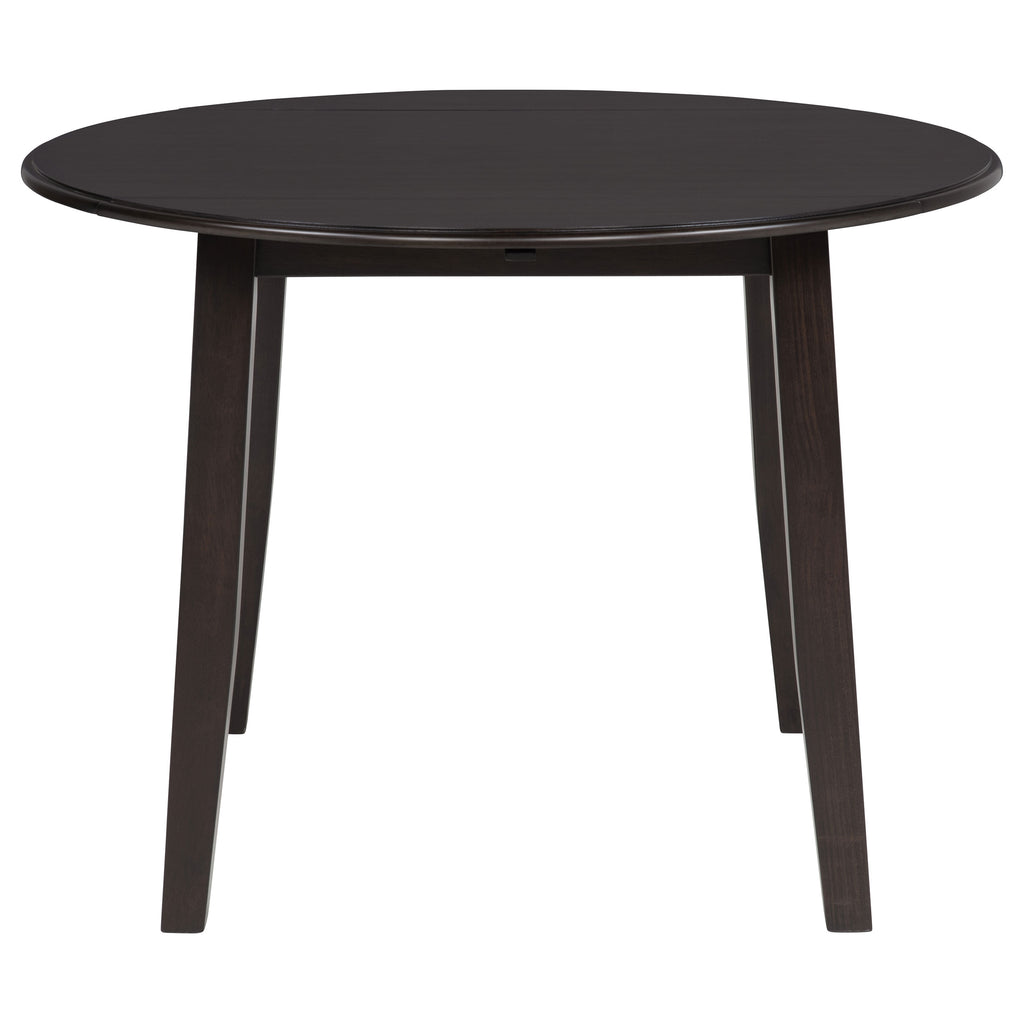 Gracefully tailored for intimate meals and lingering conversation, this five-piece round dining set brings charm and function to the heart of your home. The drop-leaf table blooms with ease, offering flexibility for everyday dining or special moments. Each chair cradles you in comfort with its curved backrest and plush ivory seat. Rich in dark coffee tones and crafted from rubberwood, mango, and engineered wood, it weaves elegance and warmth into every shared gathering.