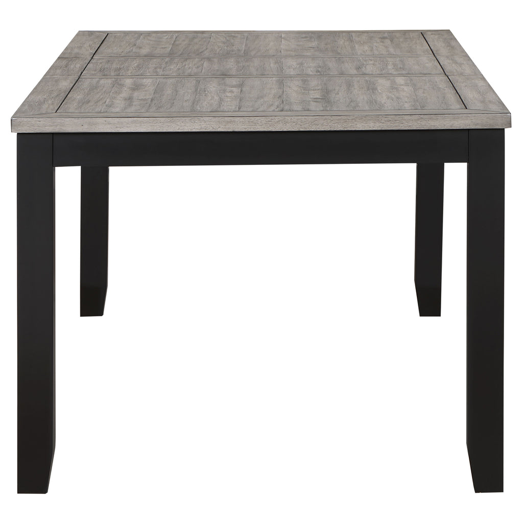 Elevate your dining experience with this farmhouse-inspired two-tone finished dining set