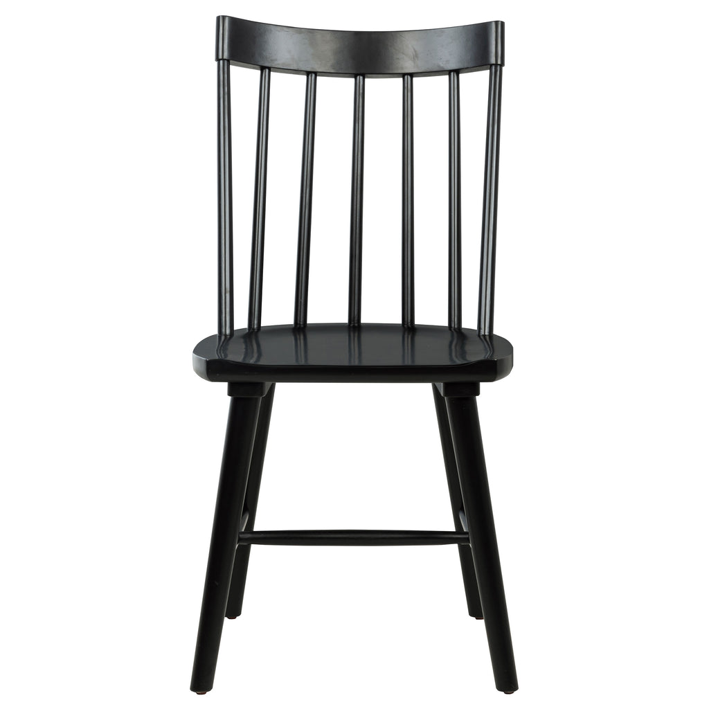 This modern Windsor-style dining side chair refreshes a classic silhouette with a trendy finish, creating a sleek, contemporary accent in any dining room. Built from solid hardwood, it ensures sturdy support and everyday durability. Its slender spindles and gently contoured back balance comfort and style. Whether for casual family meals or special gatherings, this versatile chair seamlessly complements a variety of interior aesthetics.