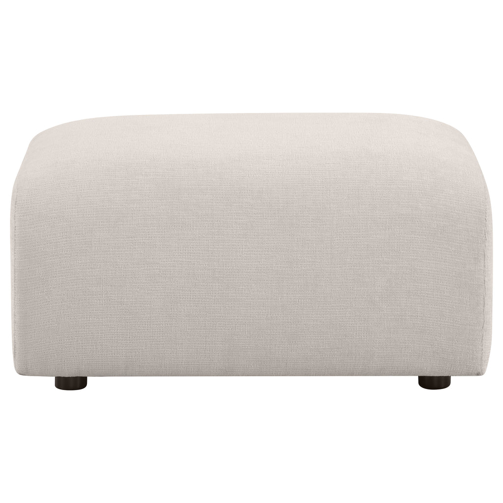 Ottoman features a rounded silhouette with bold curves and clean, soft edges