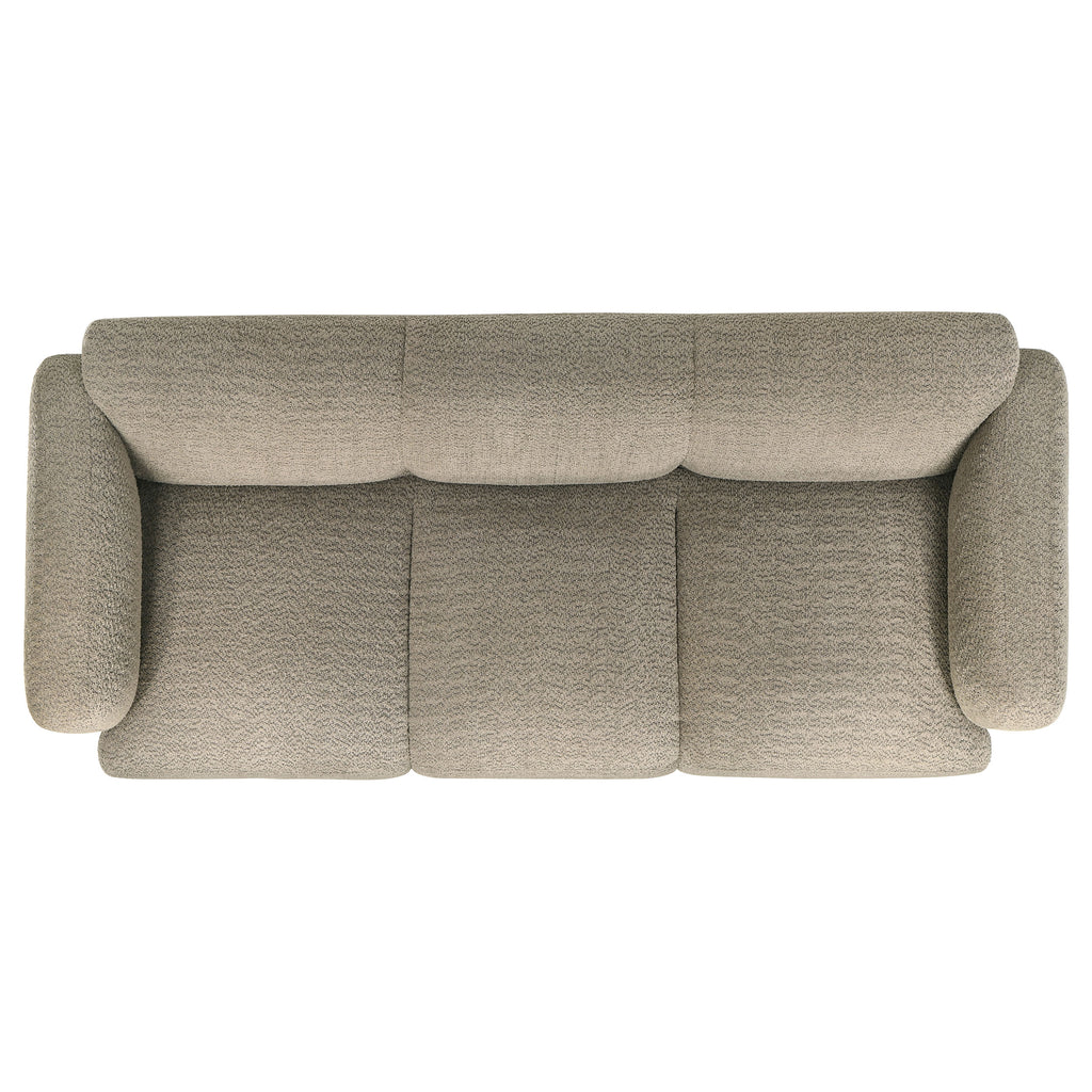 This sculptural sofa set blends soft curves with modern simplicity for a cozy, elevated lounge experience. Each piece is wrapped in richly textured fabric and designed with a low-profile frame, rounded edges, and wide track arms that invite you to unwind. High-quality foam and pocket coil seating ensure supportive comfort that lasts. With its seamless silhouette and tactile finish, this sofa set offers minimalist warmth and relaxed sophistication for any contemporary living space.