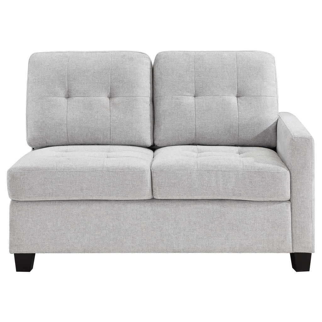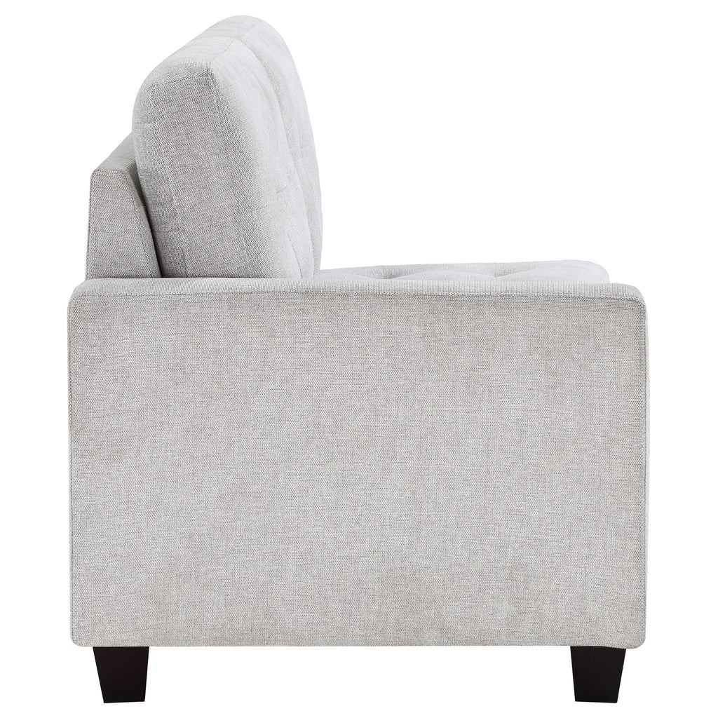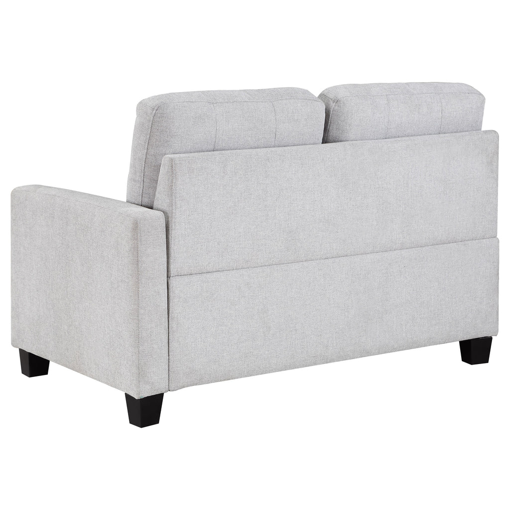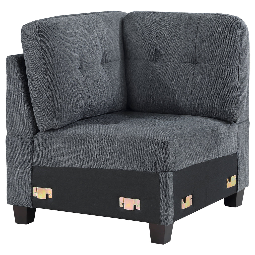 - Fabric Color: Steel Grey - Leg Color: Black - Upholstery: Fabric - Fabric Content: Polyester 100% - Clean Code: W - Overall Weight Limit: 300 Lbs - Assembly Required: Yes - Materials: Fabric, Foam, Plywood, Wood