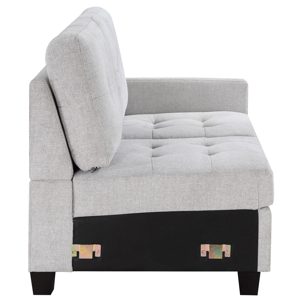 Elevate your living space with this versatile armless chair, perfect as a standalone piece or as an additional seating option in any room. Upholstered in a sophisticated fabric, this chair offers a timeless design that blends seamlessly with various decor styles. The chair features foam-padded seat cushions for superior comfort, supported by a sturdy wood frame that ensures long-lasting durability. Its sleek, armless design allows for flexible placement, making it ideal for smaller spaces or as an accent piece. The subtle tufting on the back cushion adds a touch of elegance, while chunky wood feet complete the classic look.