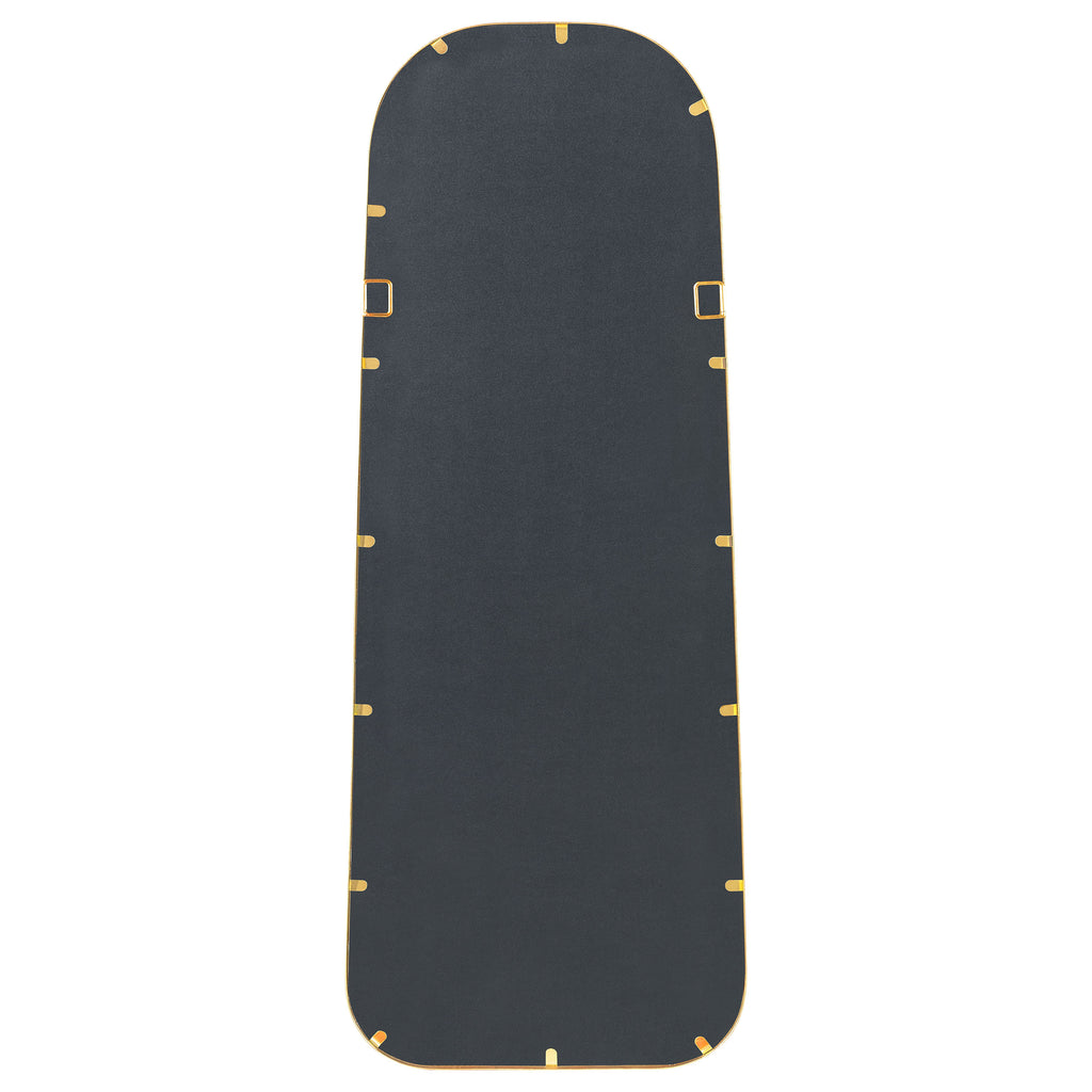 A fashion-forward look takes on simple style for perfect balance in a casual bedroom or dressing space. This floor mirror delivers a well-rounded design that dresses up or tones down a semi-formal or casual living area. A full-length design doubles the convenience of this elegant floor mirror, a suitable option for retaining the simplicity you crave yet spiced up with a sleek profile. A rounded edge silhouette and antique gold metal frame embellish stylish and sophisticated personality. Choose this mirror for its artistry and functionality.