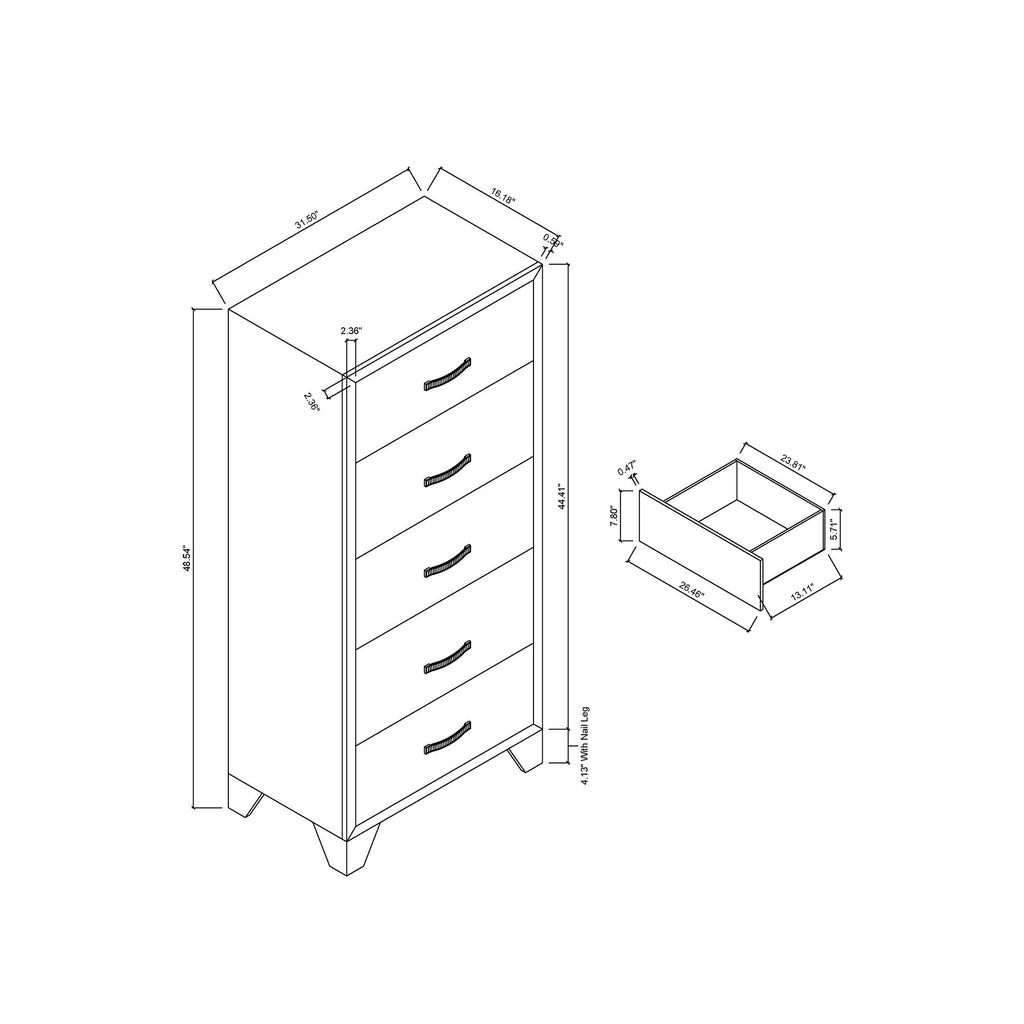 Carlos - 5 Pieces Queen Bedroom Set, Modern Design - Black
