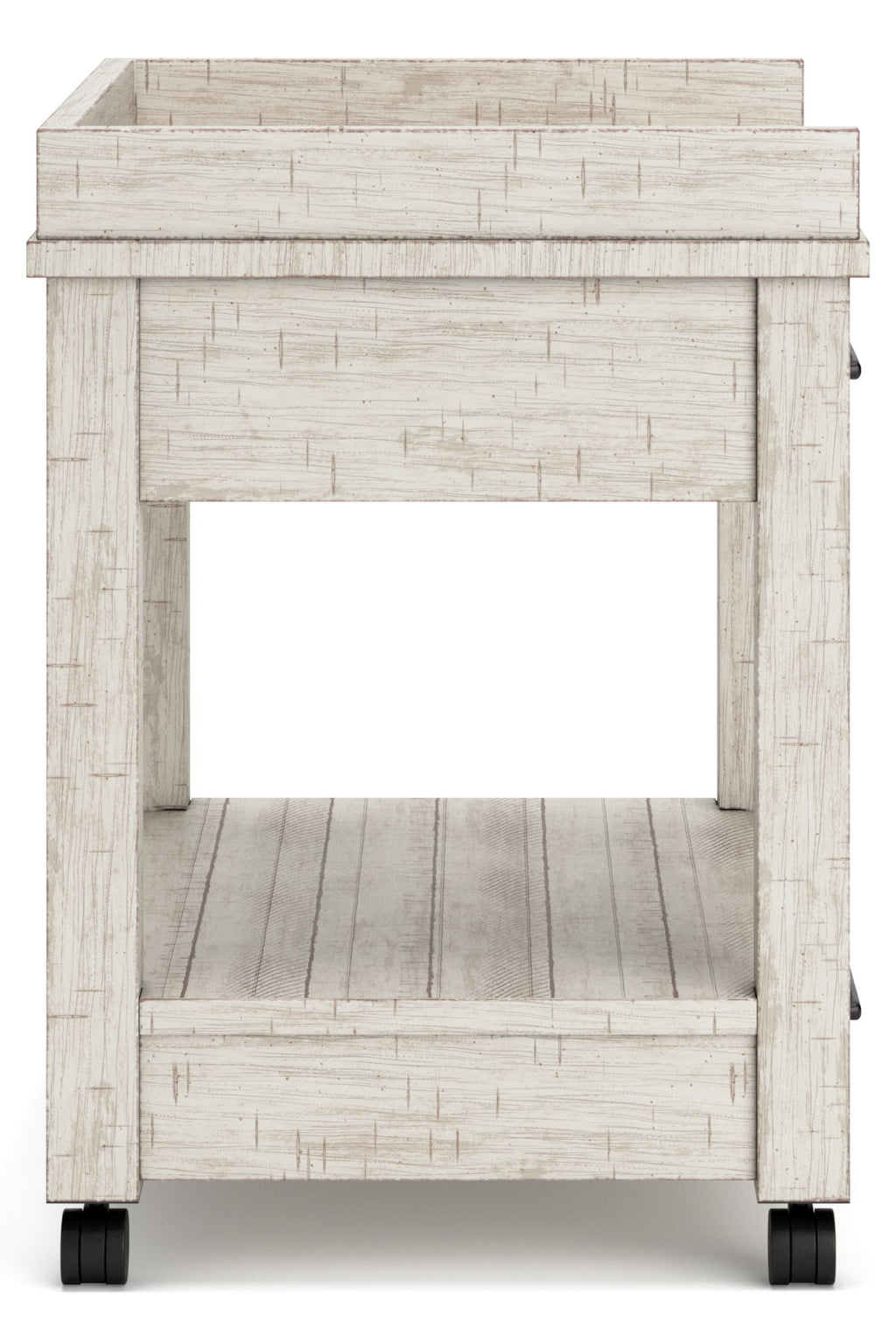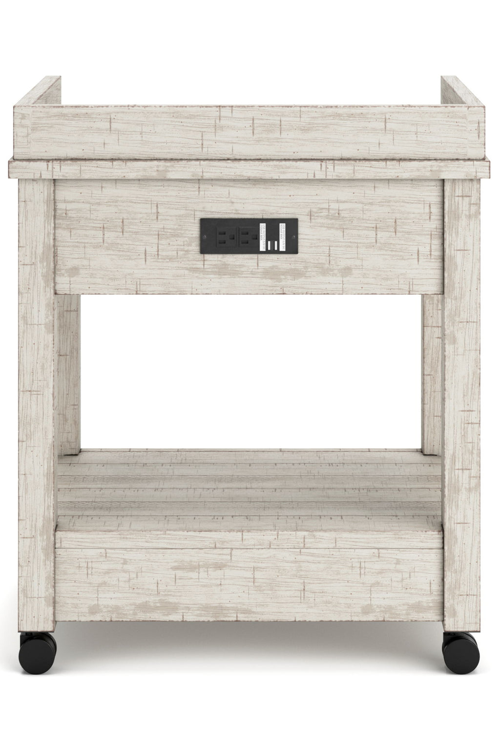 Set on casters for easy mobility, this printer stand rolls out a fresh look in modern farmhouse living. Two smooth-gliding drawers with dovetail construction reflect high quality that never goes out of fashion. Pair of electrical outlets and USB charging ports make it an indispensable home office essential.