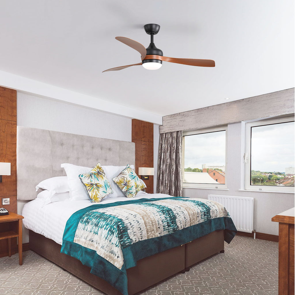 Reversible DC Motor Ceiling Fan With 18W LED Light, Remote Control, 3 Blades, Dimmable & Timable - Brown