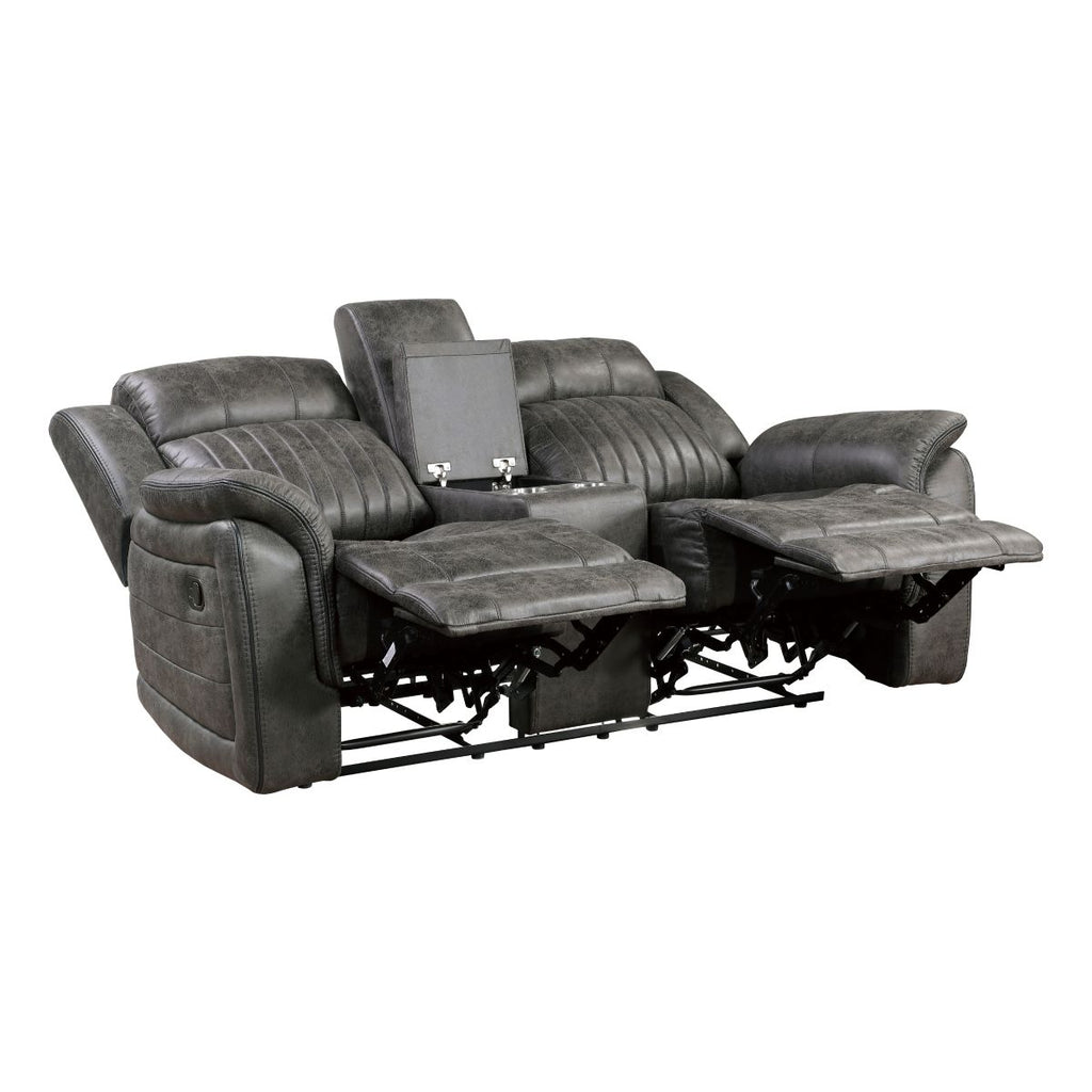 The design of the Centeroak Collection provides a platform for your relaxing downtime. From the classic transitional style to the versatile neutral color of the brown-ish gray or sandy brown polished microfiber fabric covering, this collection is the perfect addition to your living room. Plush seating features vertical tufting, pillow-top arms, each enhanced by the dual end recliners of the sofa and love seat, and the reclining chair. Creating additional function is the console of the love seat providing secure placement of beverages and lift top hidden storage. The reclining mechanism is engaged with a pull of the side mounted tabs, taking you from seated to prone in an easy motion.