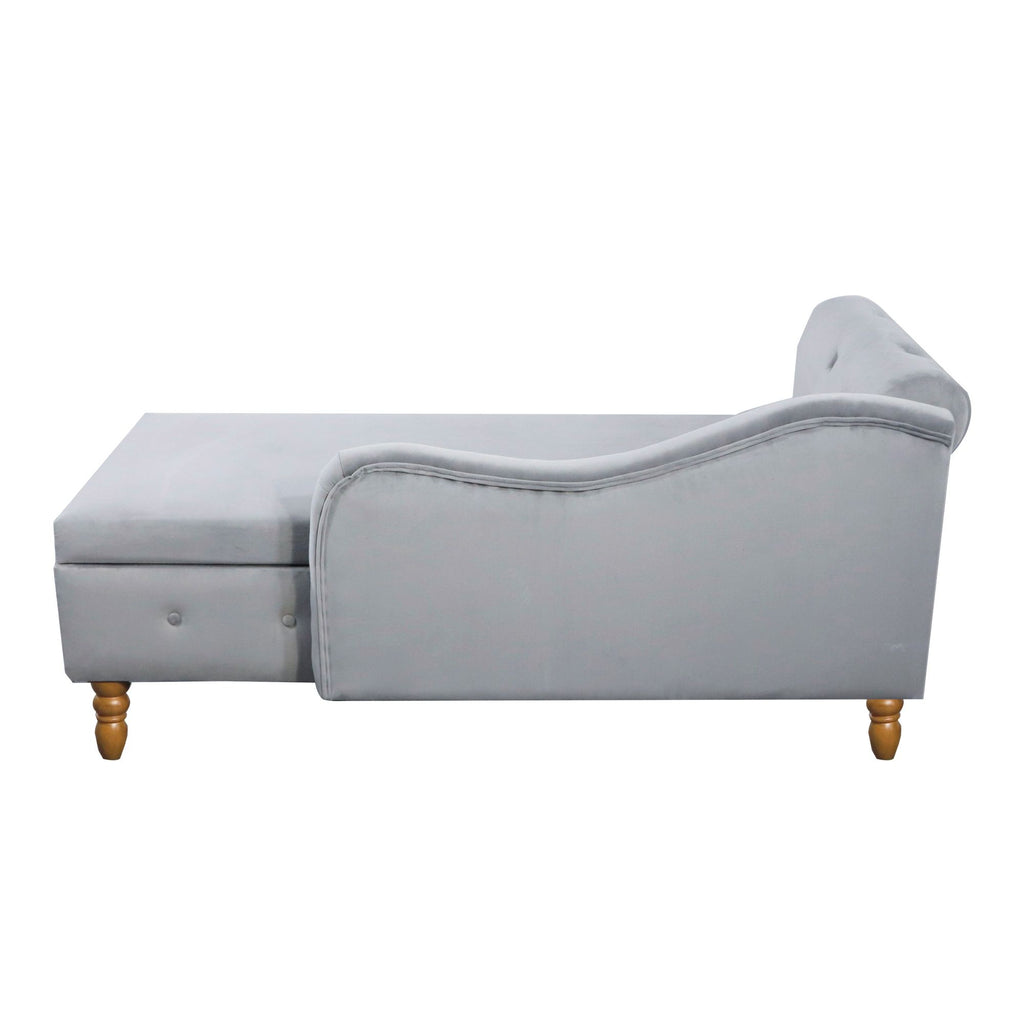 Chaise Lounge Indoor, Velvet Lounge Chair For Bedroom With Storage & Pillow, Modern Upholstered Rolled Arm Chase Lounge For Sleeping With Nailhead Trim For Living Room Bedroom Office - Gray