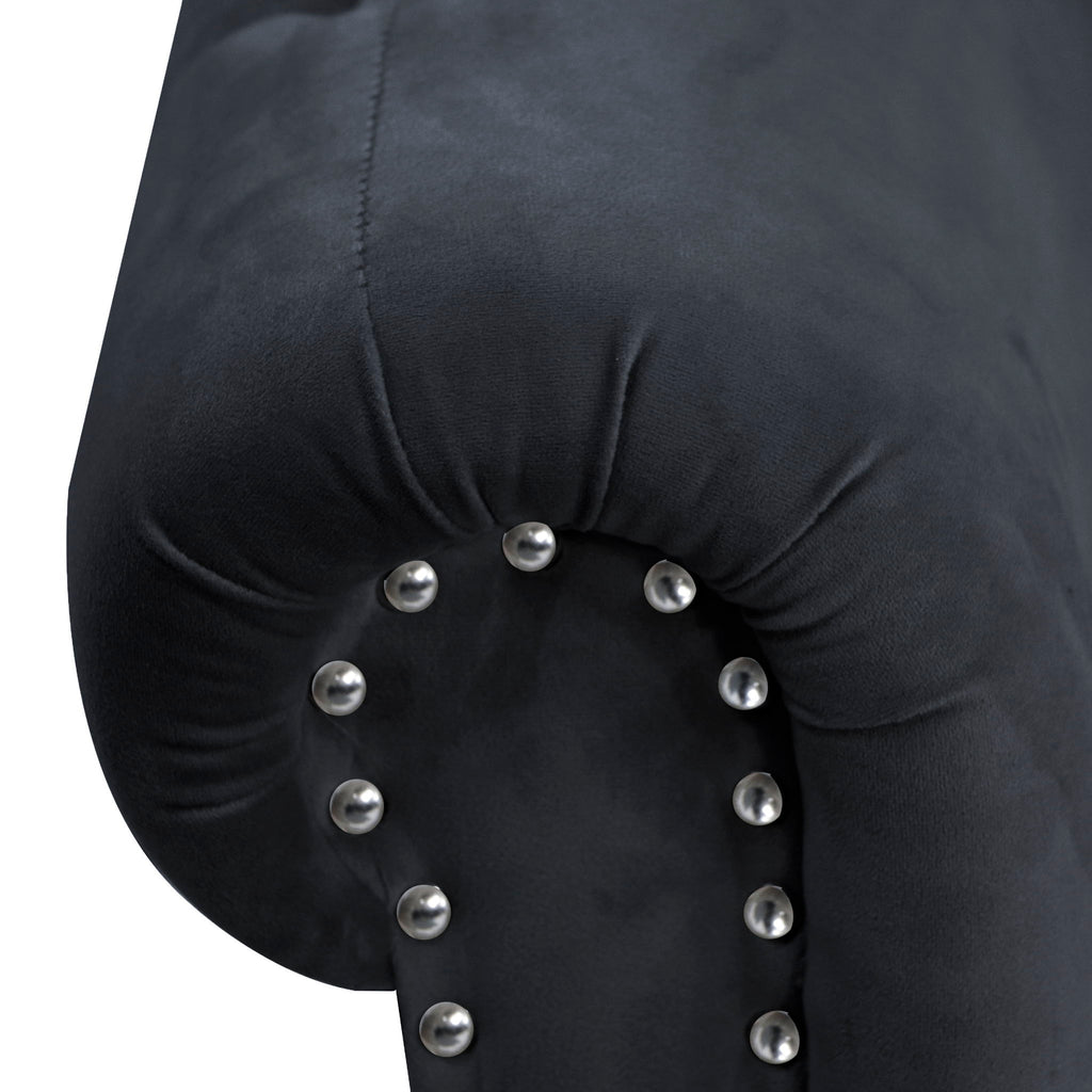 Chaise Lounge Indoor, Velvet Lounge Chair For Bedroom With Storage & Pillow, Modern Upholstered Rolled Arm Chase Lounge For Sleeping With Nailhead Trim For Living Room Bedroom Office - Black