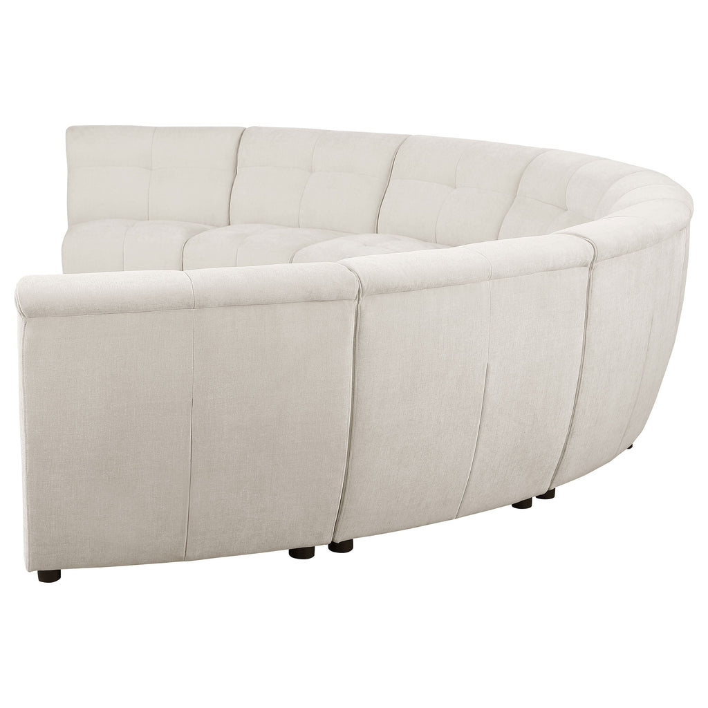 Make a living room or media room the favorite choice for guests and family with a five-piece sectional sofa with minimalism and sophistication woven into its streamlined design. The sectional sofa cuts to the chase with an ultra-comfortable seating experience and subtly rounded profile, perfect for socializing. Durable ivory fabric is soft and inspiring, lending a versatile element to match or coordinate with surrounding décor. This sectional aligns eight armless pieces for a customized configuration and features contemporary design elements with plump, foam-filled framing and decorative tufting adding dimensionality and classic style. A focal point in any space, the sectional sofa accommodates several visitors and adds a low-key, easy motif.