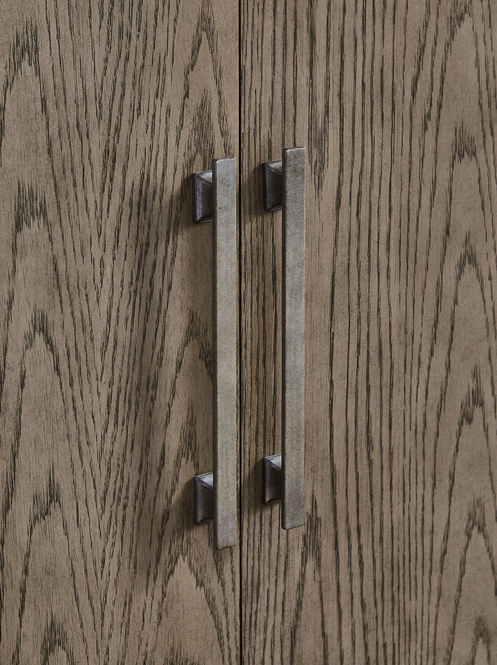 You want your dining room to reflect your refined sensibilities while remaining forward-thinking in design. The simple silhouette of this dining server opens the door to a dining room with the curated look and subtle flair you desire. The piece's elegant waxy gray finish gets an added touch of luxury with striking metal bar pulls in a light pewter tone. Two double door cabinets, each with an adjustable shelf, allow you to store in streamlined style.