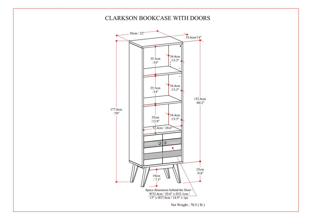 22.0"W x 14.0"D x 70.0"H - 57.3 lb