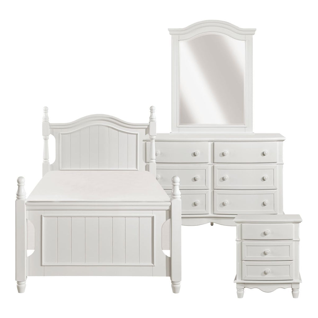 Clementine - 4 Piece Set (Twin Bed, Nightstand, Dresser, Mirror) - White