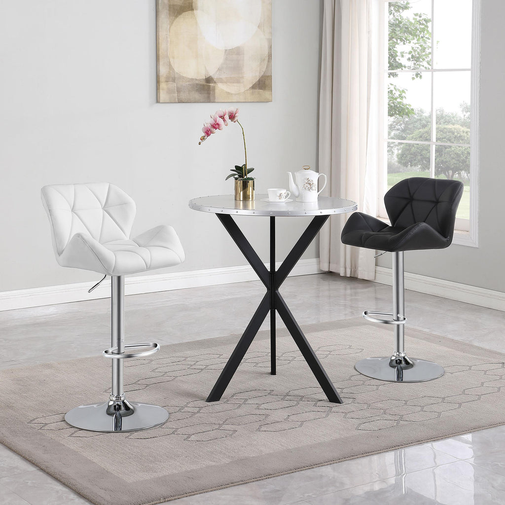 Enhance the look and feel of a breakfast bar with casual comfort and understated glamour. This stylish white bar stool blends appealingly with a variety of decor and color schemes. A simple, round foot rest provides an extra level of comfy relaxation. Elegant tufting enhances the modern design of its plush, cozy seat, while a gleaming chrome finish base adds a pleasing touch of polish. Its height is conveniently adjustable, opening up a variety of placement options to meet your seating needs.