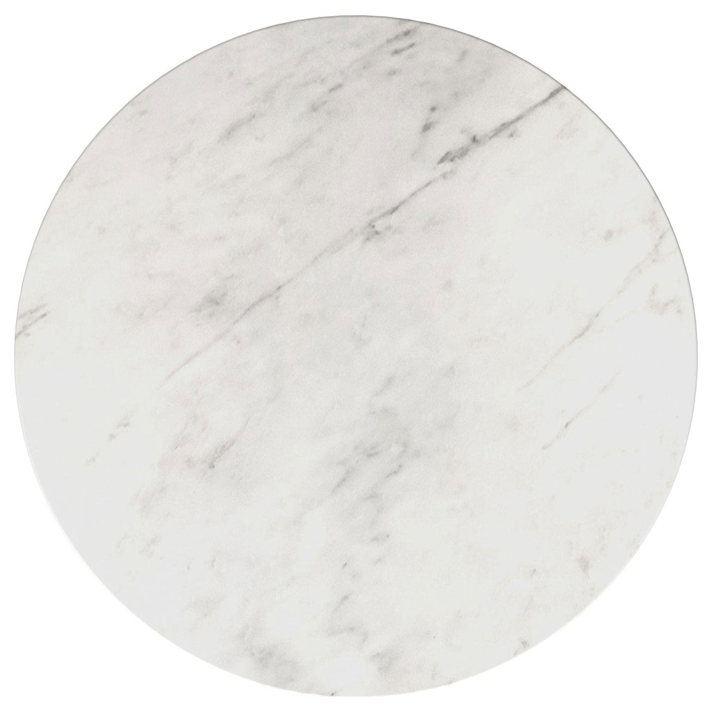 • Modern round coffee table with a genuine white marble top and pedestal base