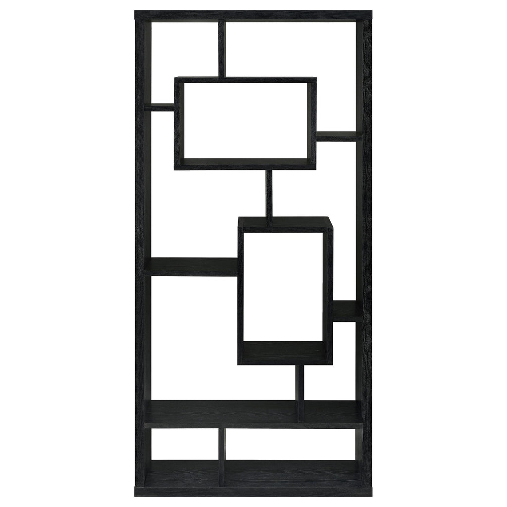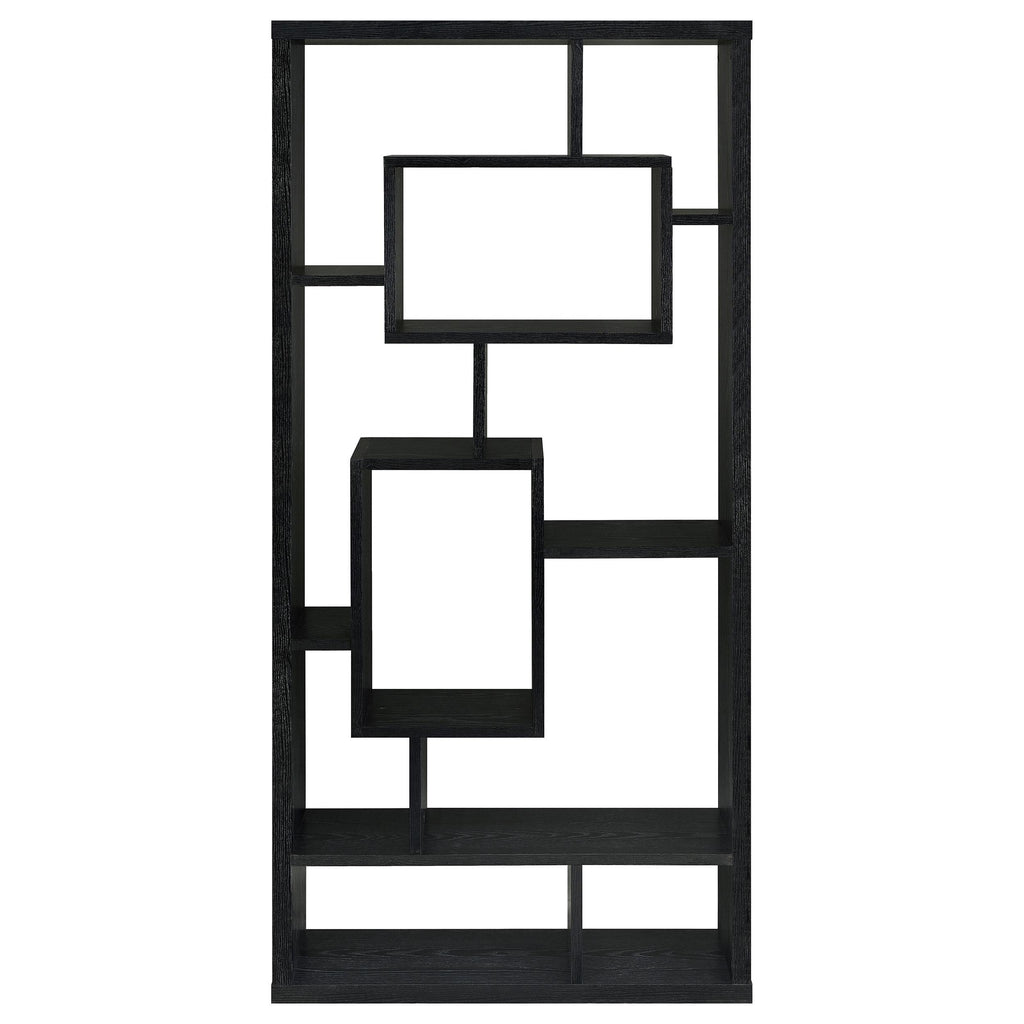 Show off your bold, modern taste in home decor. This ten-shelf bookcase boasts a funky aesthetic that updates the look of any room. Striking geometric shapes are artistically arranged to form ten convenient shelves. MDF, particle board, and engineered veneer construction lends strength and durability.