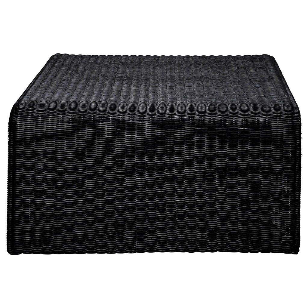• Revive the 70s with a minimalist inverted U-shape coffee table made of black metal and a woven surface for a touch of glam