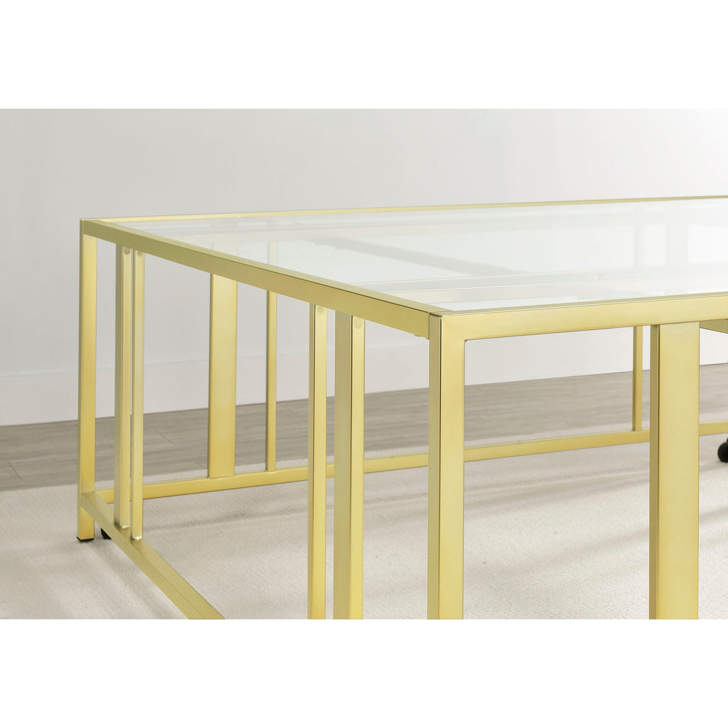 This square coffee table combines functionality with modern style, featuring a tempered glass top and a sturdy geometric base made from heavy-gauge metal. The open-frame design creates a sleek, contemporary look, while smooth-rolling casters add mobility for easy repositioning. Its scratch-resistant materials ensure durability and low maintenance, making it a versatile centerpiece for any living room or shared space.