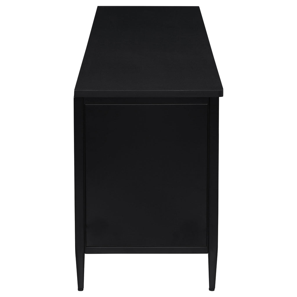 Elevate your entertainment area with this sleek 70-inch TV stand, perfect for accommodating up to a 75-inch TV. The modern design features two door cabinets with stylish radio weave polyethylene (PE) rattan fronts, adding a touch of natural texture to your space. Constructed with a durable metal frame and finished with a sleek powder coating, this stand offers both form and function. Two open-back shelves provide convenient space for devices, ensuring easy cable management and accessibility. With its contemporary appeal and thoughtful design, this TV stand enhances both the style and functionality of your living room.