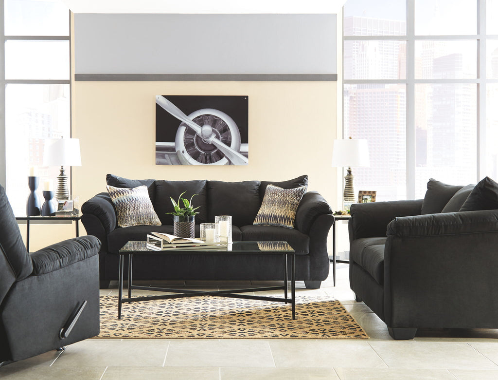 Darcy - 3 Pc. - Sofa, Loveseat, Rocker Recliner - Black