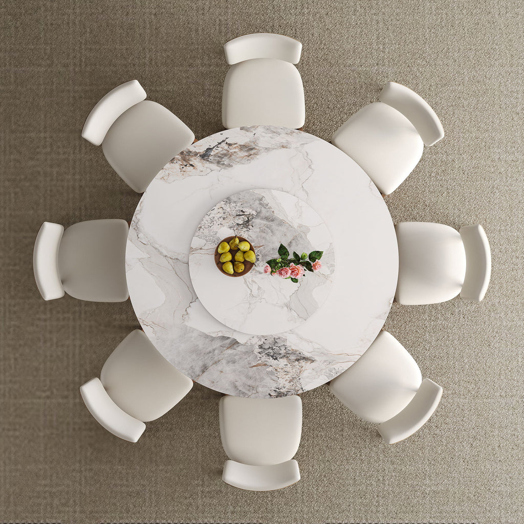 Dining Table Set, Round Turntable, Seats 6 - 8 Top With Textures - White