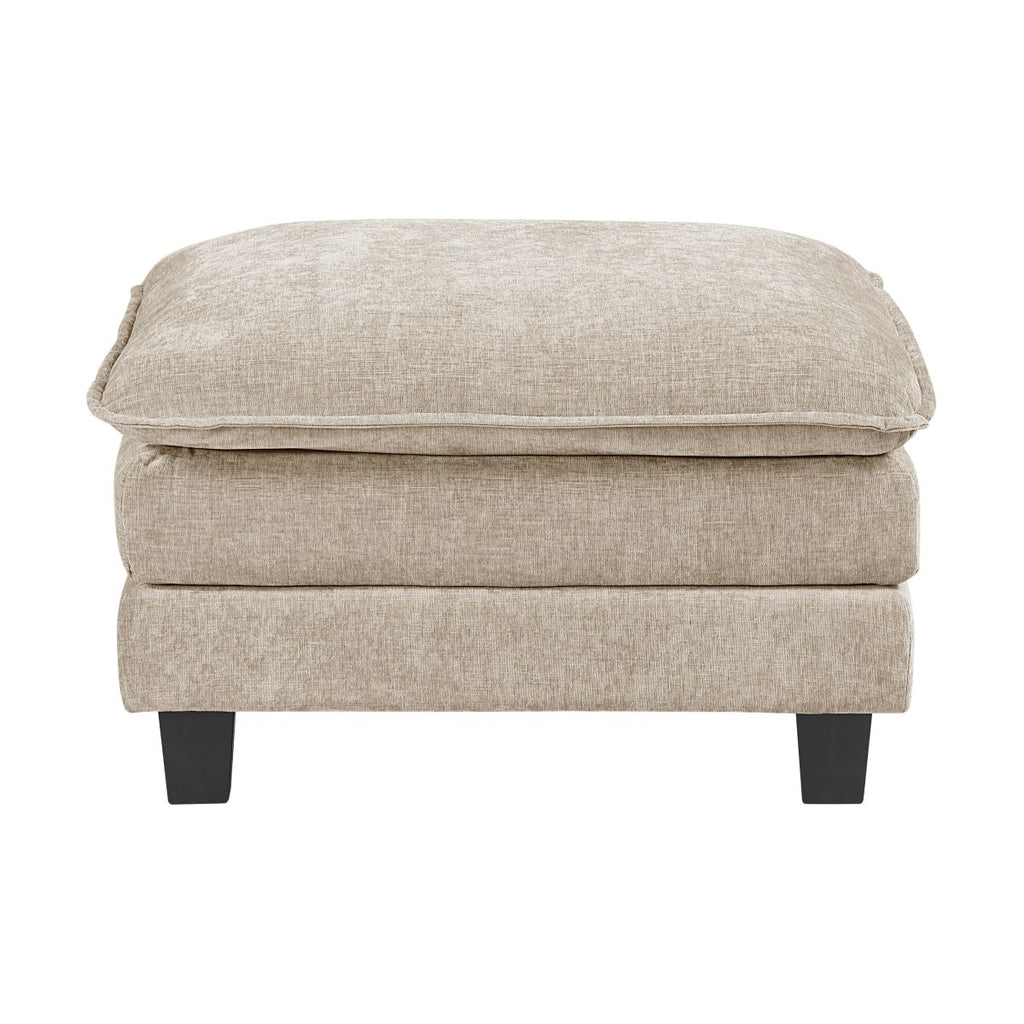 This elegant ottoman is a versatile and stylish addition to any living space, offering both comfort and functionality. Upholstered in sumptuously soft chenille fabric, it provides a warm, inviting texture and a sophisticated aesthetic that complements a variety of decor styles. The design features high-density foam padding over pocket coils, ensuring exceptional comfort, resilient support, and long-lasting shape retention. Built on a durable plywood frame with chic exposed feet in a black faux wood finish, this ottoman promises enduring quality and a refined touch to your home, perfect for resting your feet, offering extra seating, or serving as a convenient surface.