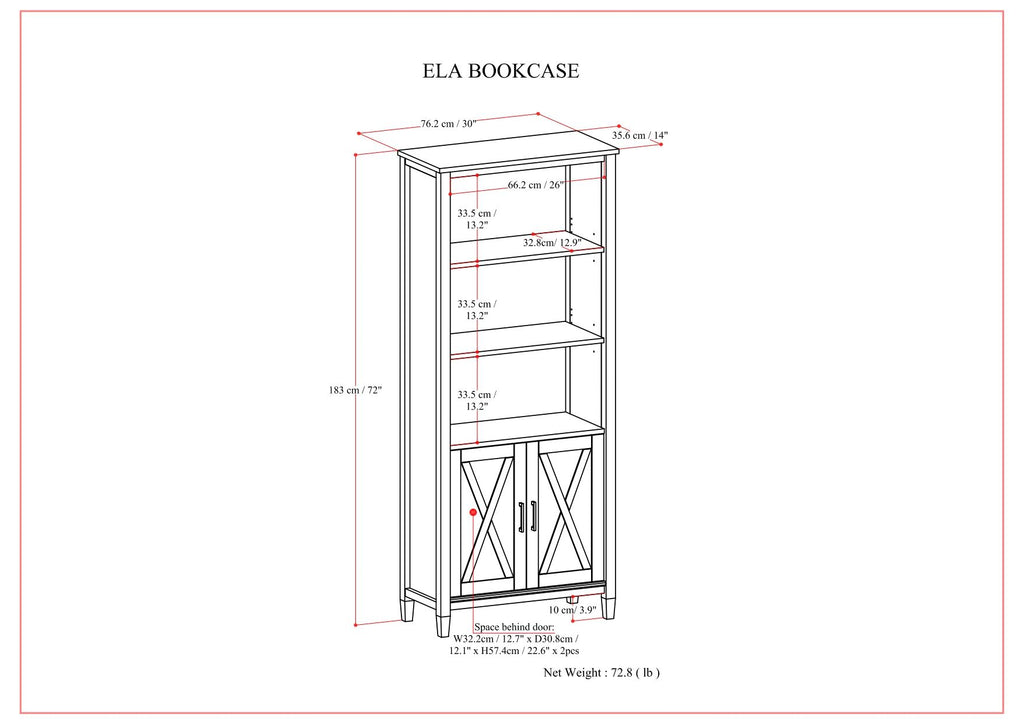 - Dimensions: 14" d x 30" w x 72" h
