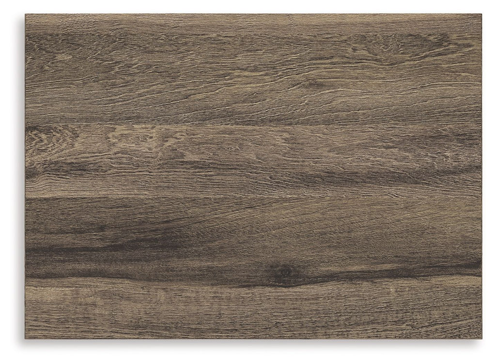 - Weathered brown finish over replicated oak grain with authentic touch