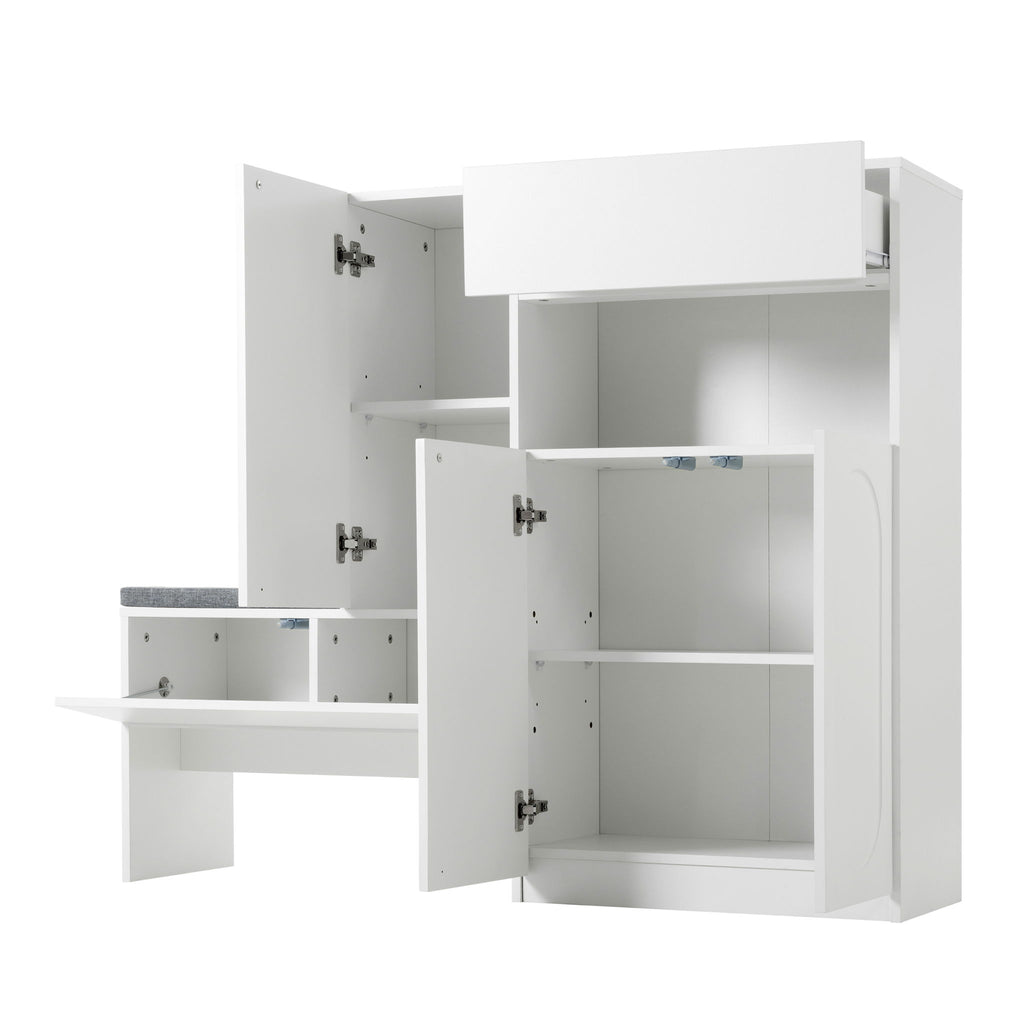 Elegant 2 In 1 Shoe Cabinets With Soft Cushion Versatile Shoe Rack Organizer With Adjustable Shelves For Hallway, Living Room - White