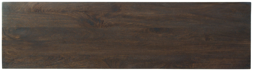This accent cabinet is a versatile stunner with 3 geometric patterned door fronts in warm dark brown accented with goldtone finish metal hardware. Standing on a goldtone metal open frame base, the three-door console is aesthetically contemporary and sophisticated, ready to serve as buffet, console or media cabinet.