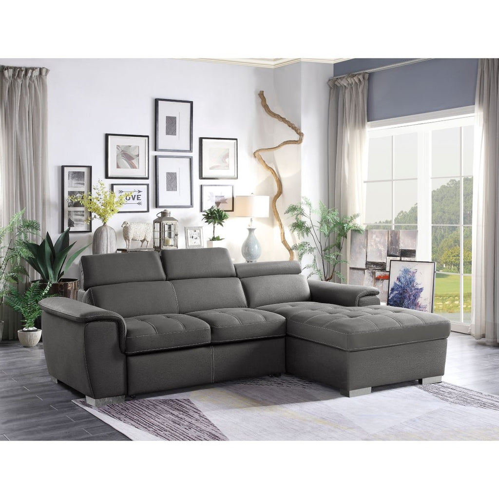 Ferriday - 2 Piece Sectional With Adjustable Headrests, Pull-Out Bed And Right Chaise With Hidden Storage - Gray