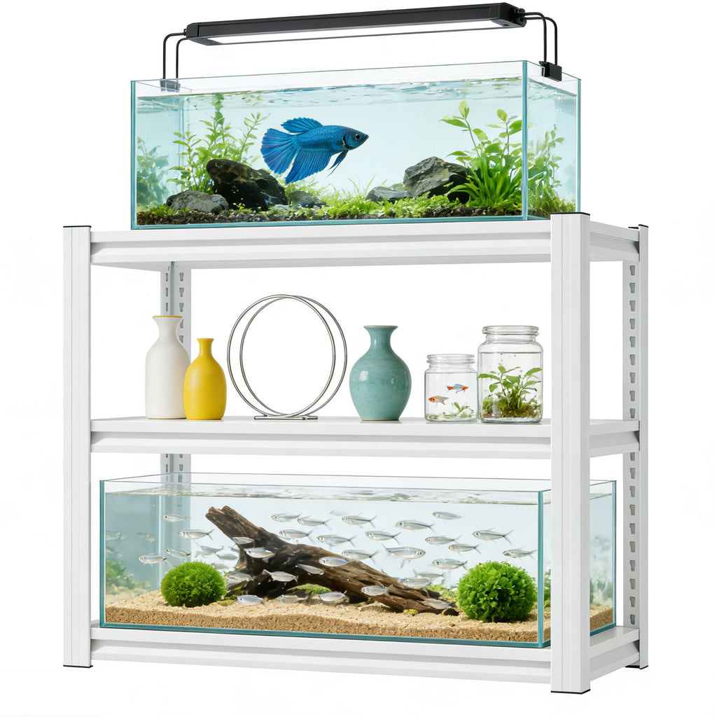 - High Space Utilization: The 3-tier fish tank stand allows for adjustable shelf heights, which can be freely adjusted up and down 3 inches according to the height of the fish tank or aquarium.