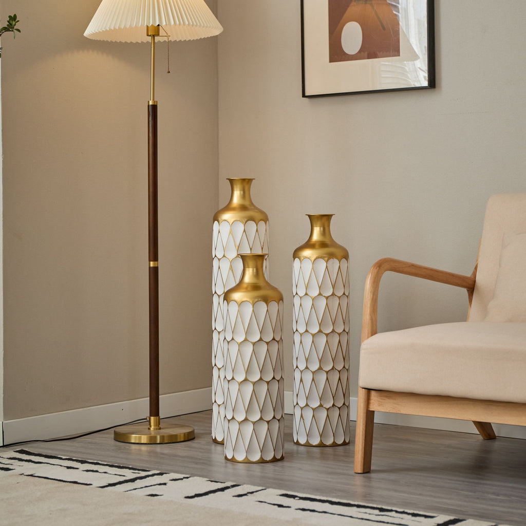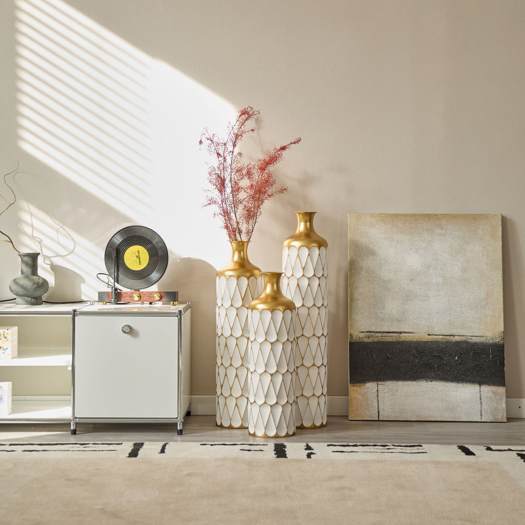 - Three Sizes Included: The set includes three vases in large (5.7" x 31.5"), medium (5.7" x 27.5"), and small (5.5" x 23.6") sizes, each weighing 15.2 lbs. in total.