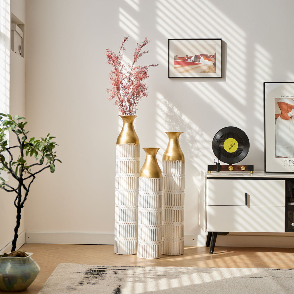 - Versatile Decorative Vases: Perfect for various home settings, these tall metal vases serve as striking standalone décor or a stylish base for floral arrangements.
