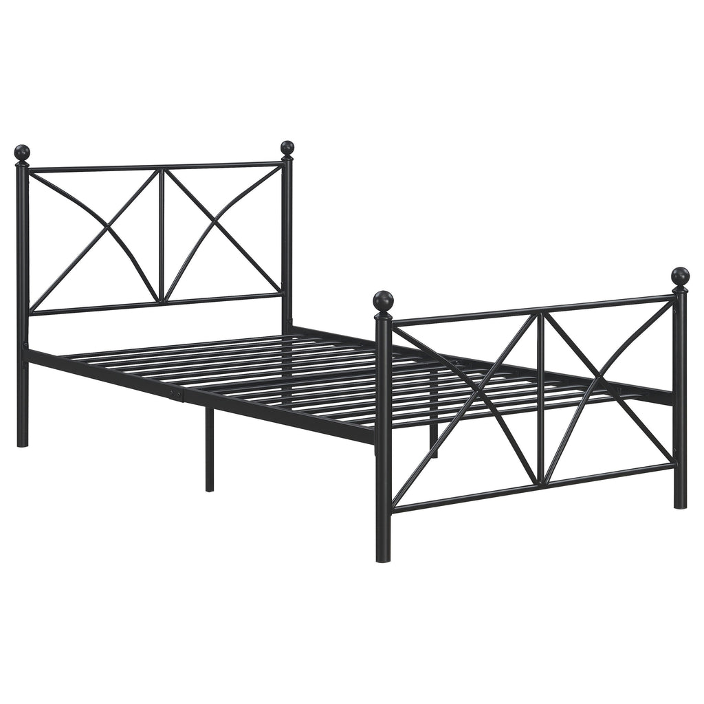 Find chic and sophisticated style with this metal bed. Coming in an assortment of styles and colors, this piece is bound to enhance many sleeping spaces. It's X-style pattern on the head and footboard gives it modern appeal. This metal bed is ideal for using in guest bedrooms and youth bedrooms. With airy appeal and straight legs, choose this bed for function and style in transitional spaces.