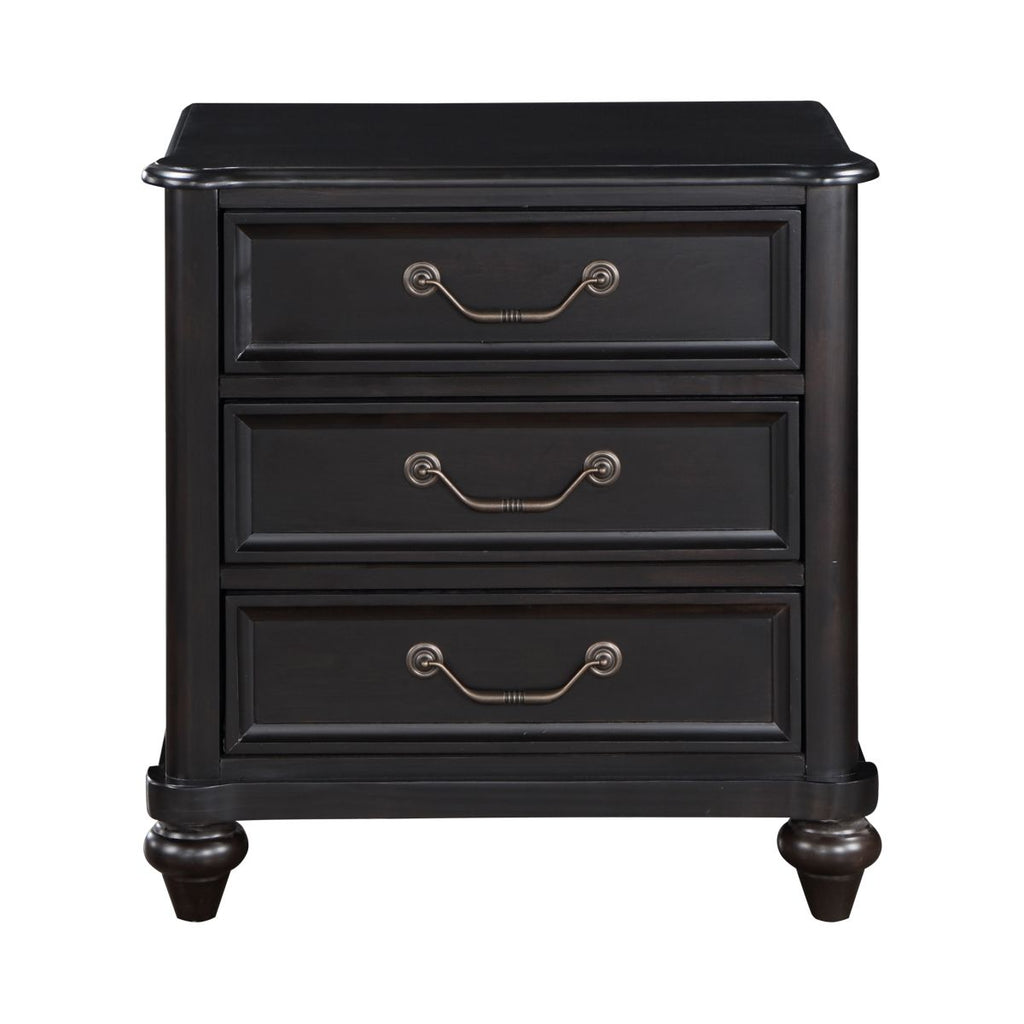 The traditional profile of the Herman Collection is achieved with a perfect blend of classic elements that create a look that complements the style of your bedroom. The subtle curve of the platform beds headboard carries over to the profile of the mirrors frame. Turned feet provide support to the classic design of the dresser, nightstand, and chest. Providing the additional storage that your room needs, the beds footboard drawers lend considerable space to achieve the task. The collection features finish, over birch veneers, highlighting the beautiful wood grain. An antiqued finish lends elegant patina to the traditional hardware of the footboard and case pieces drawer fronts.