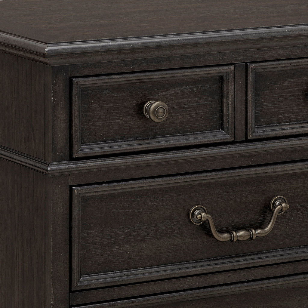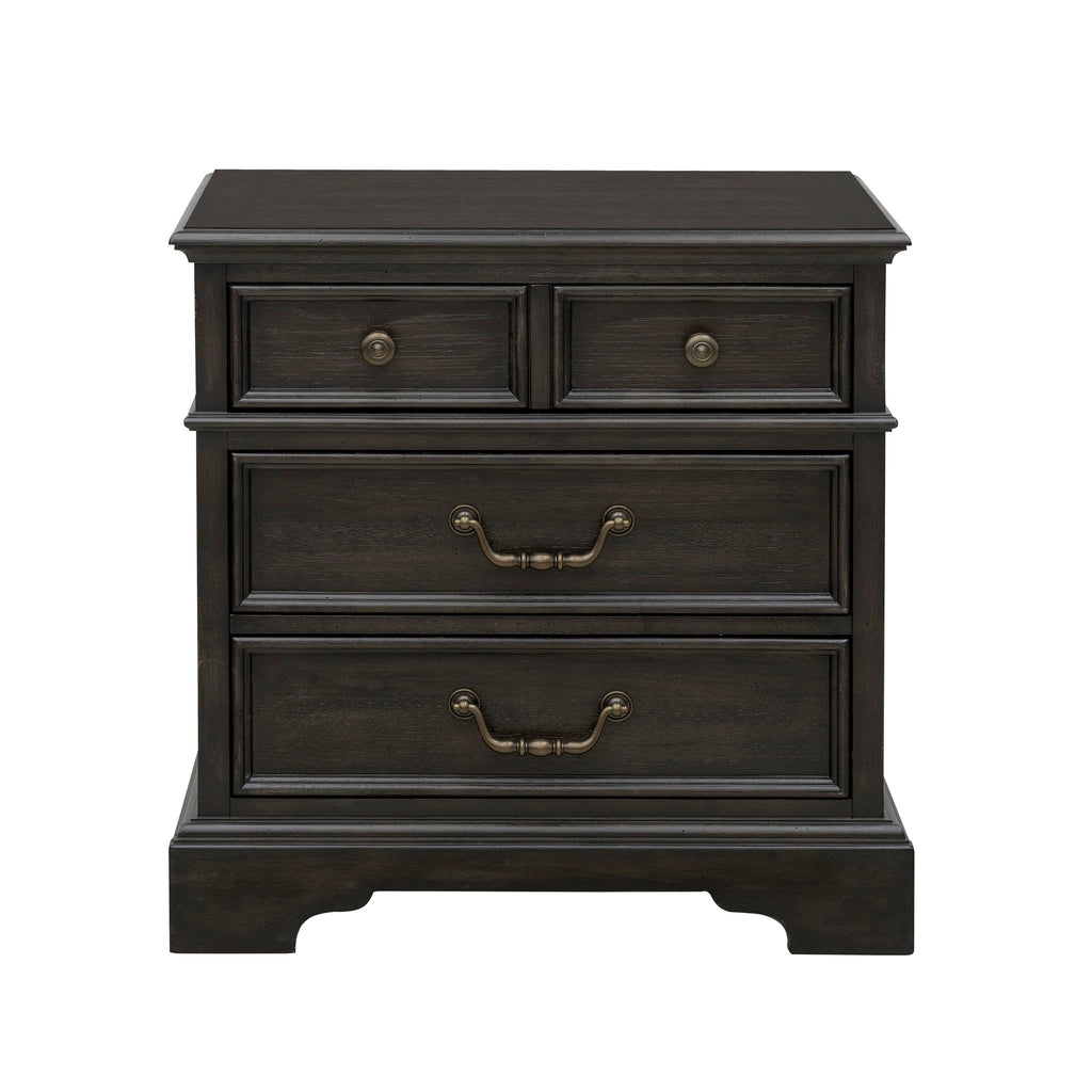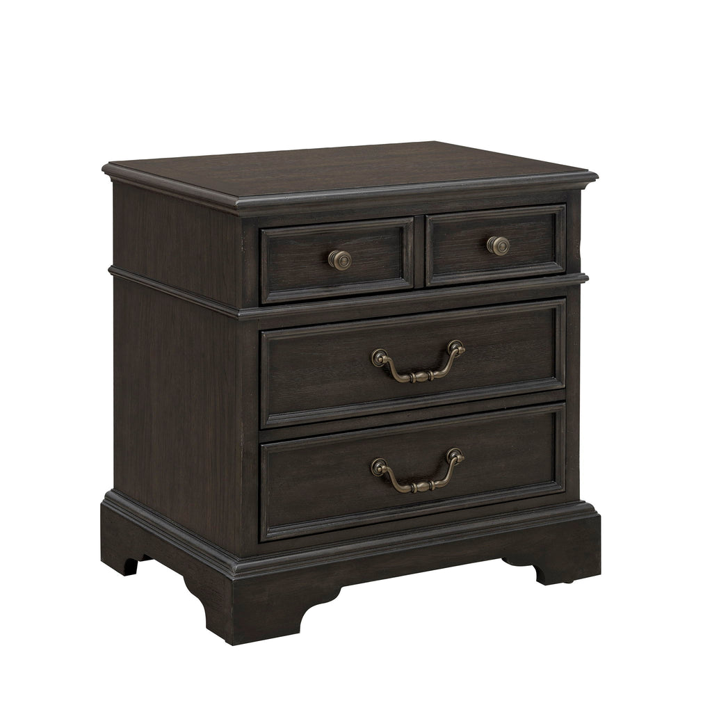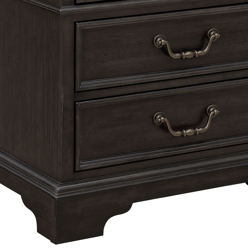 Add refined functionality to your bedroom with our Hickory Creek 3 Drawer Nightstand. This timeless piece features spacious drawers for convenient bedside storage, crafted to keep essentials organized and close at hand. Elegant corbels and petite waist molding bring architectural charm and a sense of heritage, enhancing the nightstand’s stately presence. The rich Brown Velvet wood finish highlights the natural beauty and distinctive grain patterns of split heart cathedral hickory veneers, creating a warm, textured look with lasting appeal.