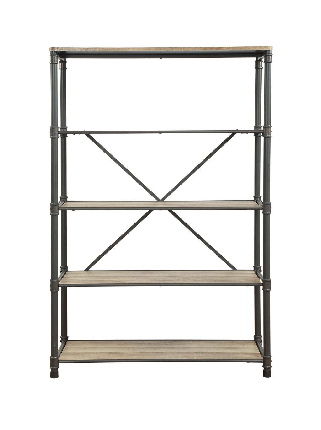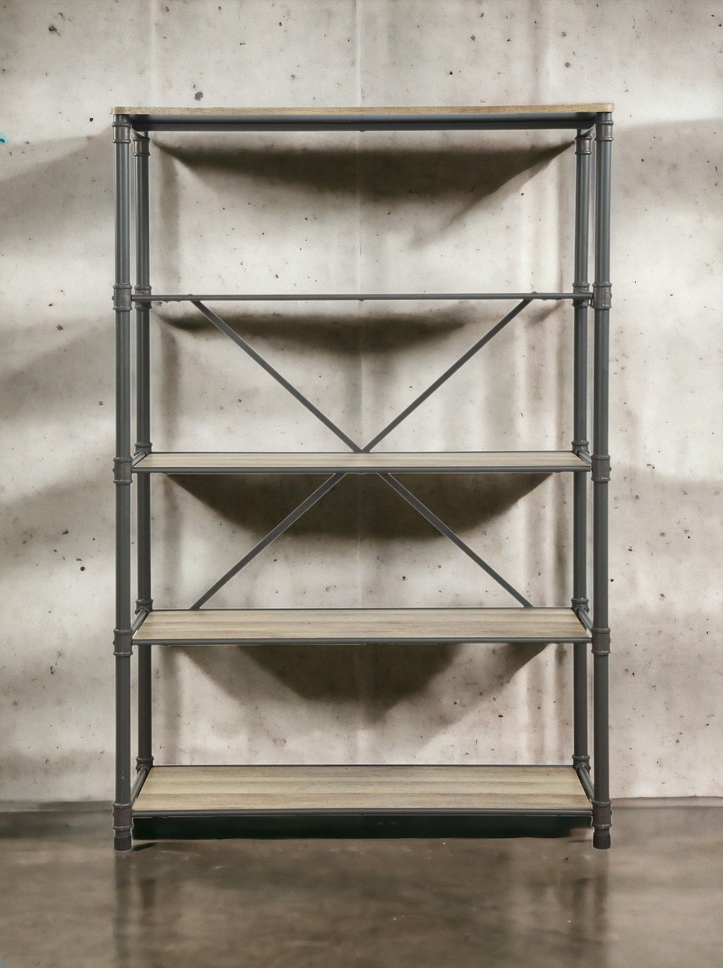 - Industrial Design: This bookshelf combines industrial charm with functional design, featuring a rectangular shape with four open compartments and five wooden shelves, ideal for displaying books and decor.