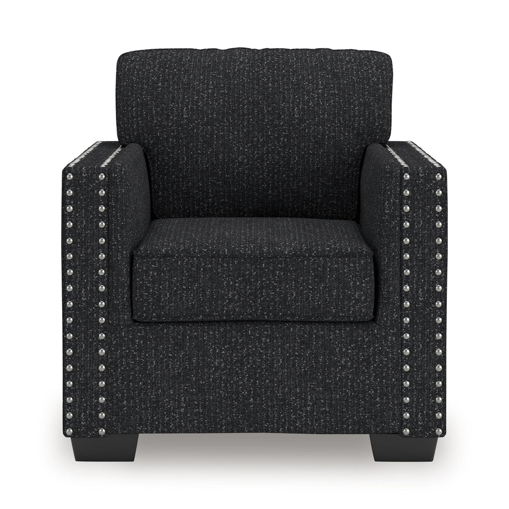 This stunning chair leaves a lasting impression. Its cozy cushions, chic coal-colored upholstery and striking nailhead trim are a perfect blend of comfort and contemporary design. And here’s the showstopper—ambient red, white and blue LED lighting along the chair's base. The look is simply wow.