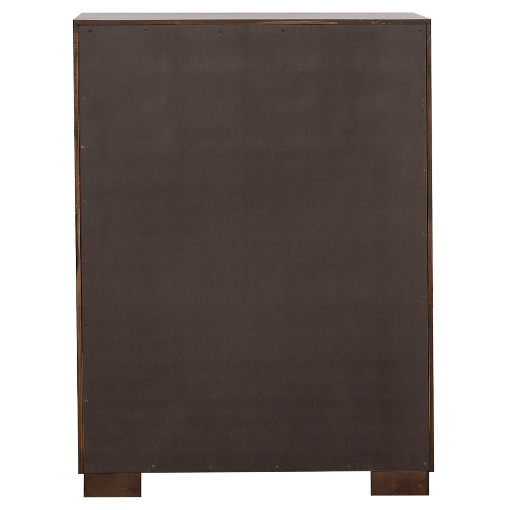 Finish off your bedroom decor with effortless style and grace. This six-drawer chest pulls a room together with versatile sophistication. Its drawers provide plenty of space to store your valued belongings. High-quality wooden construction offers maximum durability. With elegant silver bar handles and a rich cappuccino finish, this dresser exudes fashionable flair.