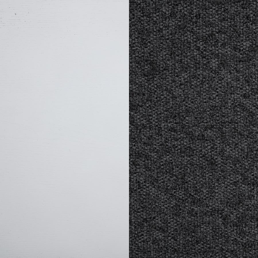 Dimensional grey upholstery creates engaging contrast and depth for this set of two modern dining chairs. Each boasts a tall, refined silhouette that's armless to create a smooth, streamlined silhouette. Cushions are padded with foam and covered in dark grey upholstery. A pearl white finish adds crisp, clean character, delivering a look that works beautifully in a variety of spaces and decor styles. Chairs are complete with flared front legs and squared edges that encourage a clean, precise look.