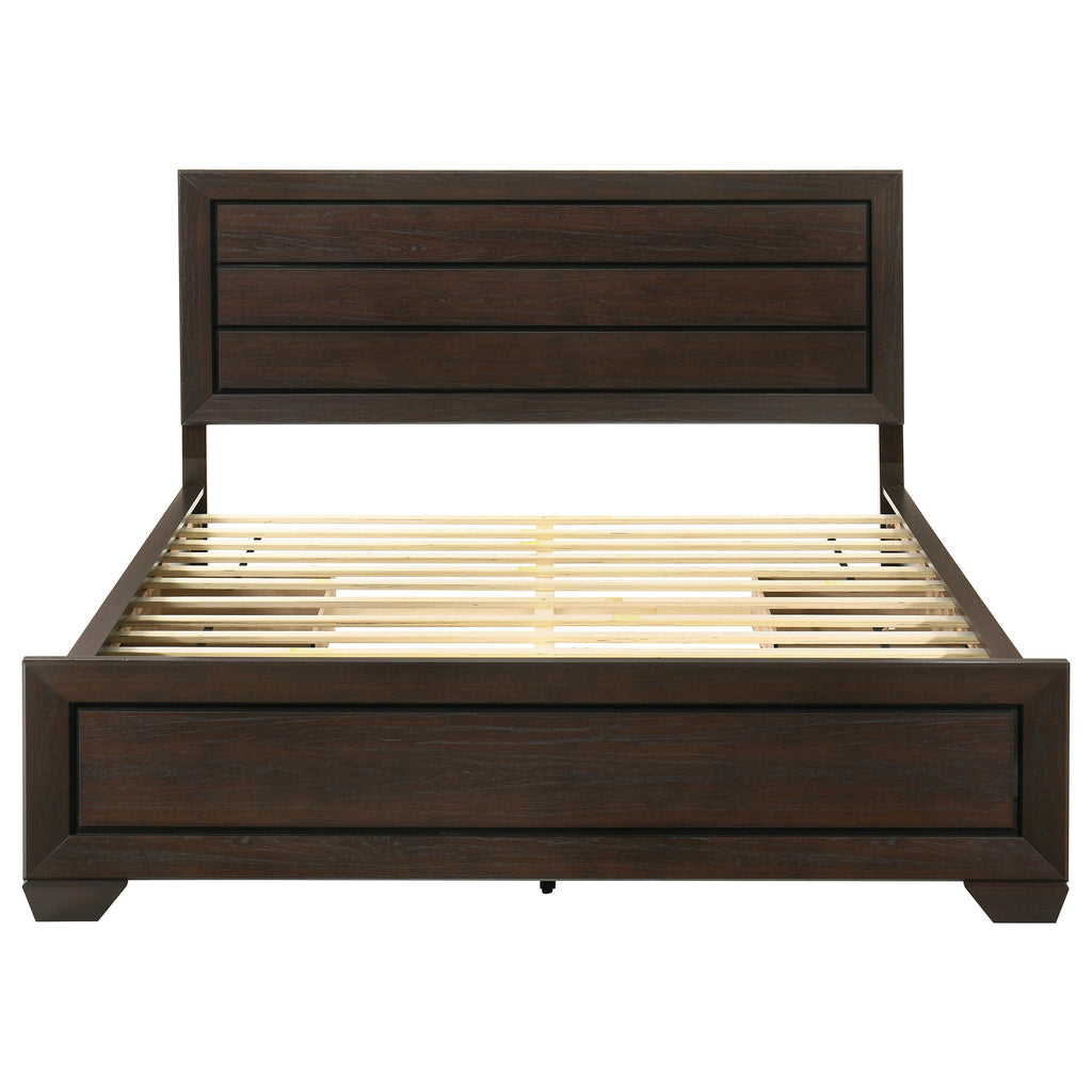 A fresh, rich flavor adds tasteful aesthetics to interior decor. Try this exceptional bed in any transitional space. Dramatic and bold, its dark cocoa finish features contrasting black recessed grooves. Choose linen ensembles that highlight its enticing personality. This bed becomes a fitting center piece in any room.