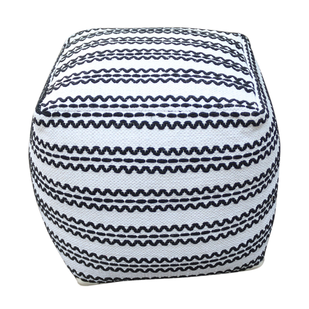 Lani - Handcrafted Fabric Pouf, Durable Cotton Square - Natural / Black
