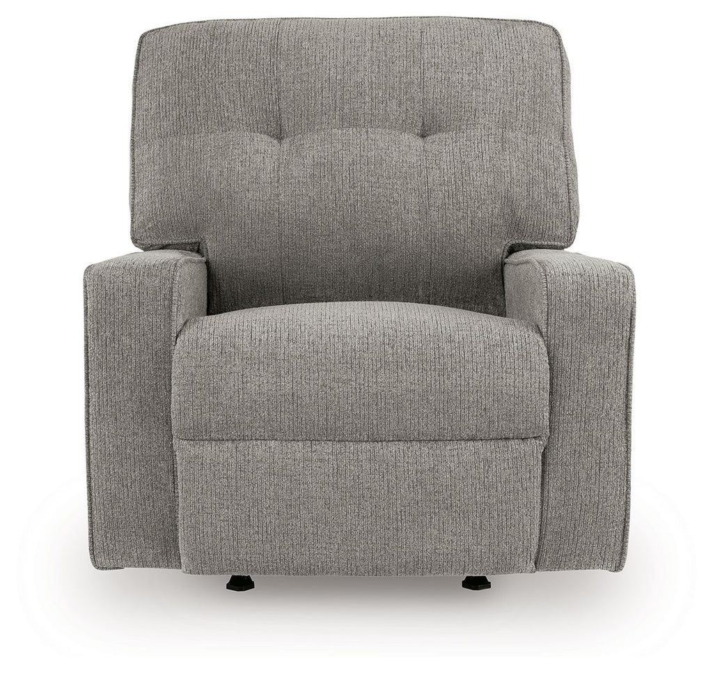 Sincere in its styling, this recliner marries classic function with modern design elements for truly transitional appeal. Its track arms lend a contemporary vibe, while easy pull tab reclining ups the comfort level. And with the recliner's goes-with-anything neutral upholstery, styling is made simple. All that’s left for you to do is sit back and relax.
