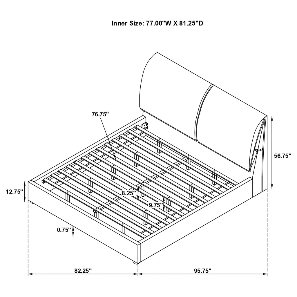 Eastern King Bed: Width: 83.50, Depth: 96.25, Height: 43.25, Weight: 141.09